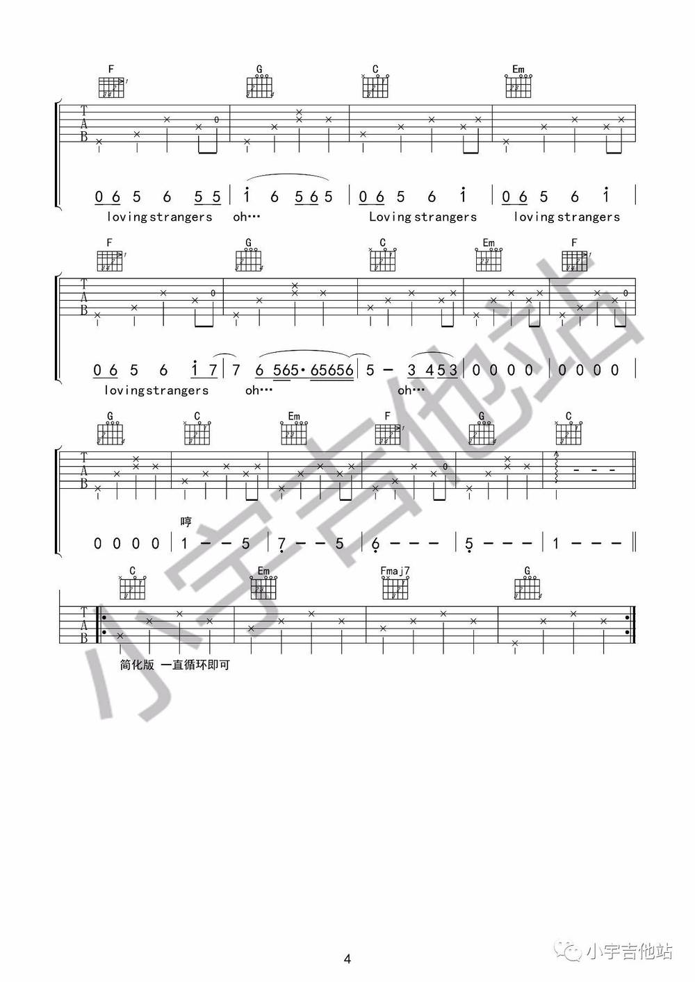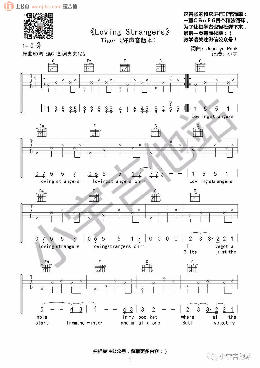 Loving Strangers吉他谱 - Loving - C调吉他弹唱谱