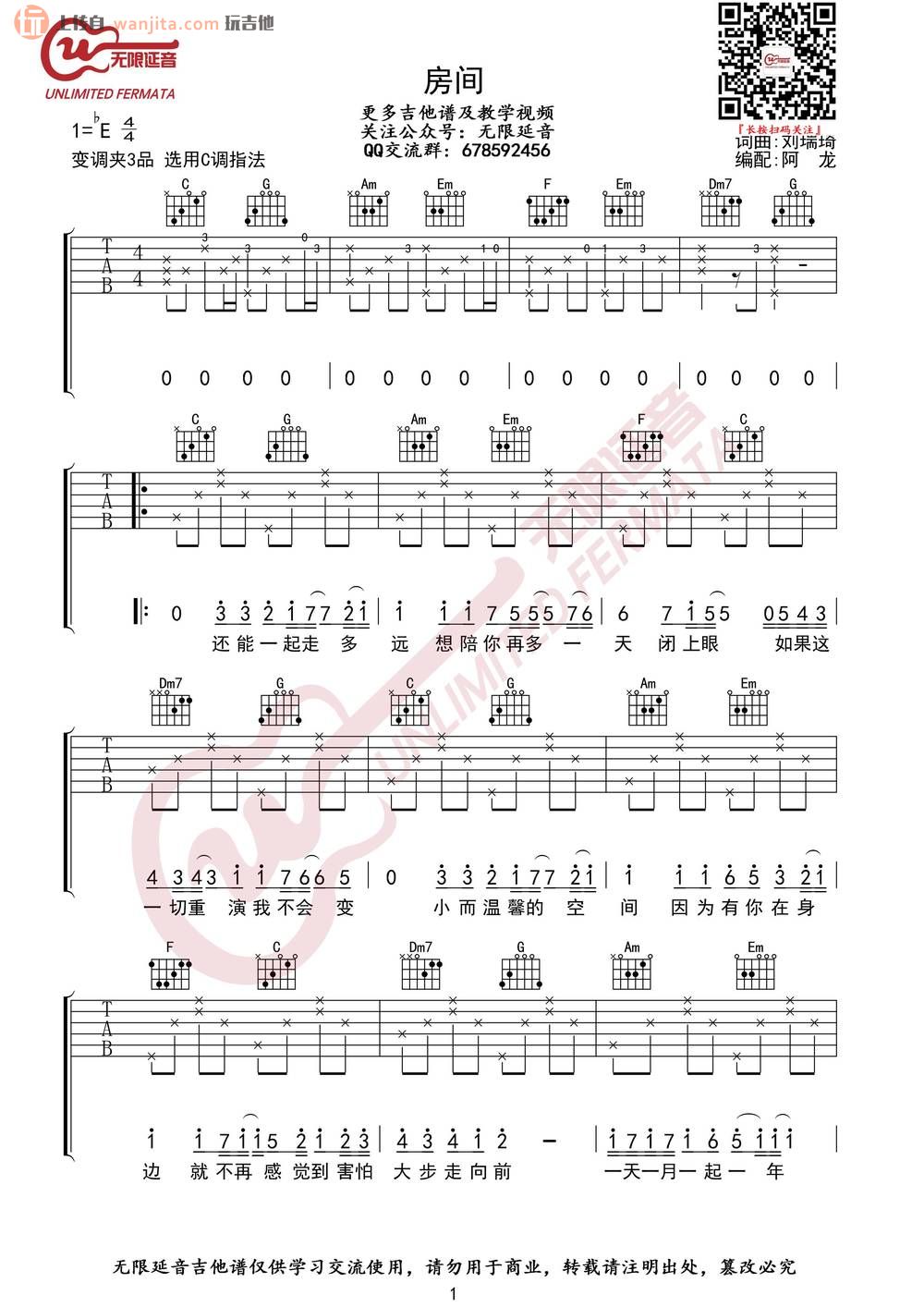 当前位置:琴谱网>吉他弹唱>房间