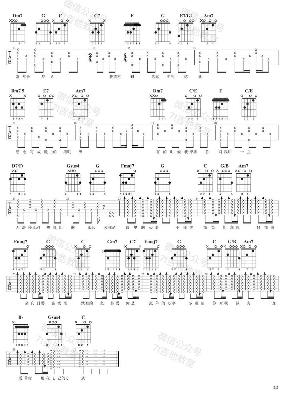 曲谱介绍: 孤单心事是蓝又时的一首代表作之一,这首情歌还是非常适合吉他弹唱,版本原调是B调,选调是C调指法编配,曲谱是由7t提供,非常接近原版,总共有2张高清图片谱。歌曲本身是《终极一班》的影视原声。每个人都藏着一个最深的秘密,来自心中那份暗自的甜蜜,也是心中最纯粹的美好。