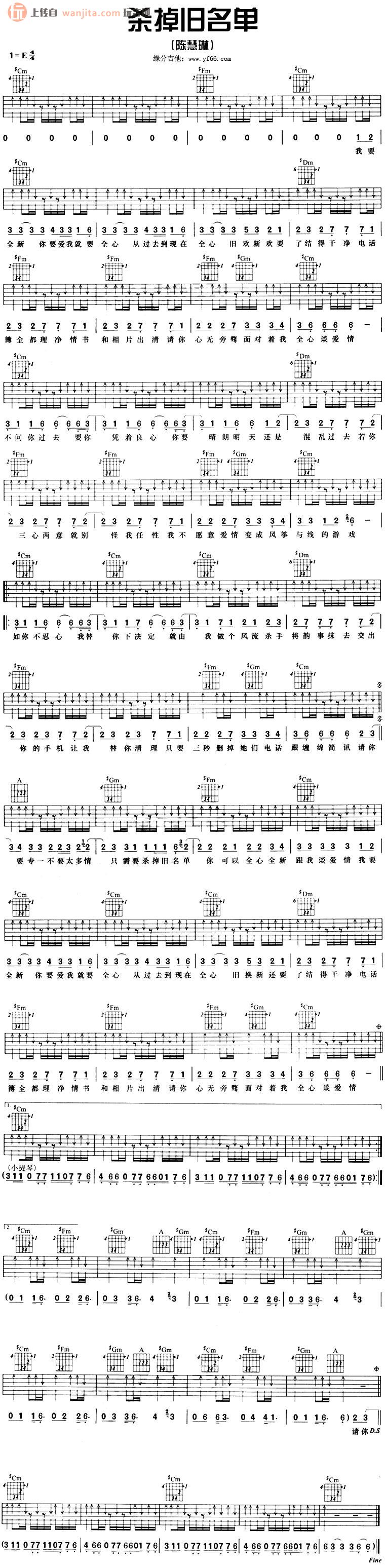 杀掉旧名单吉他谱 - 陈慧琳 - E调吉他弹唱谱