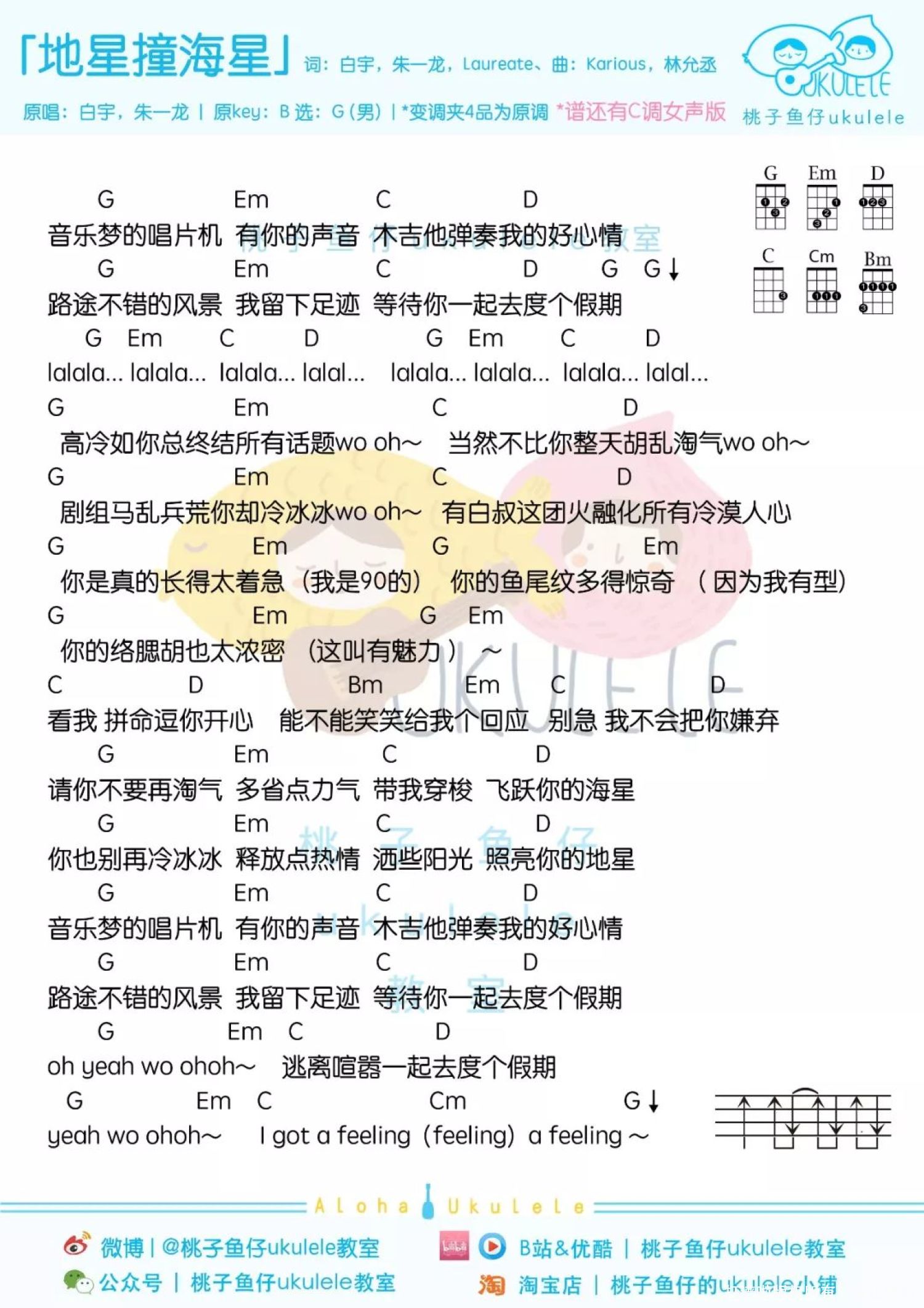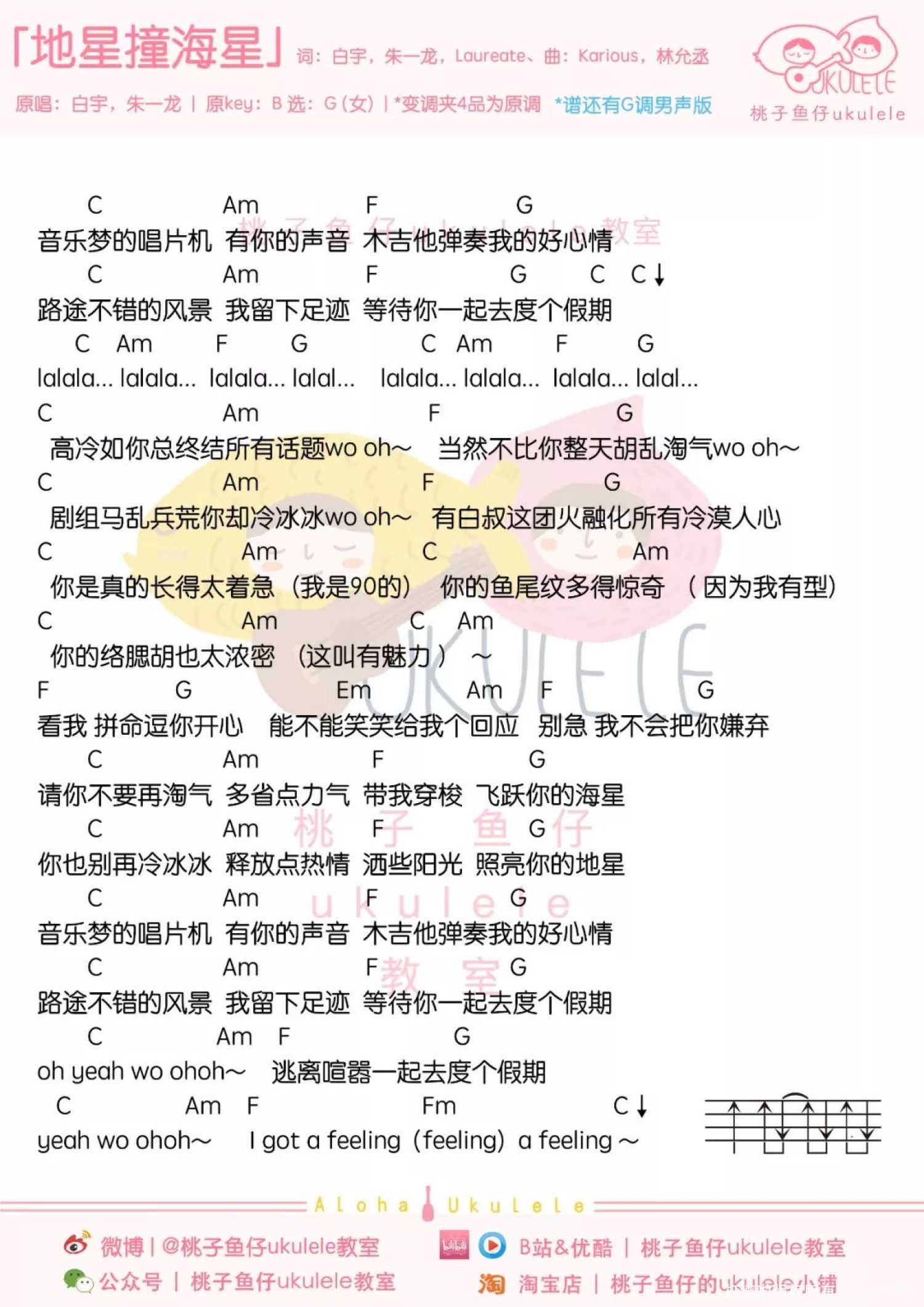地星撞海星尤克里里谱 - 朱一龙白宇