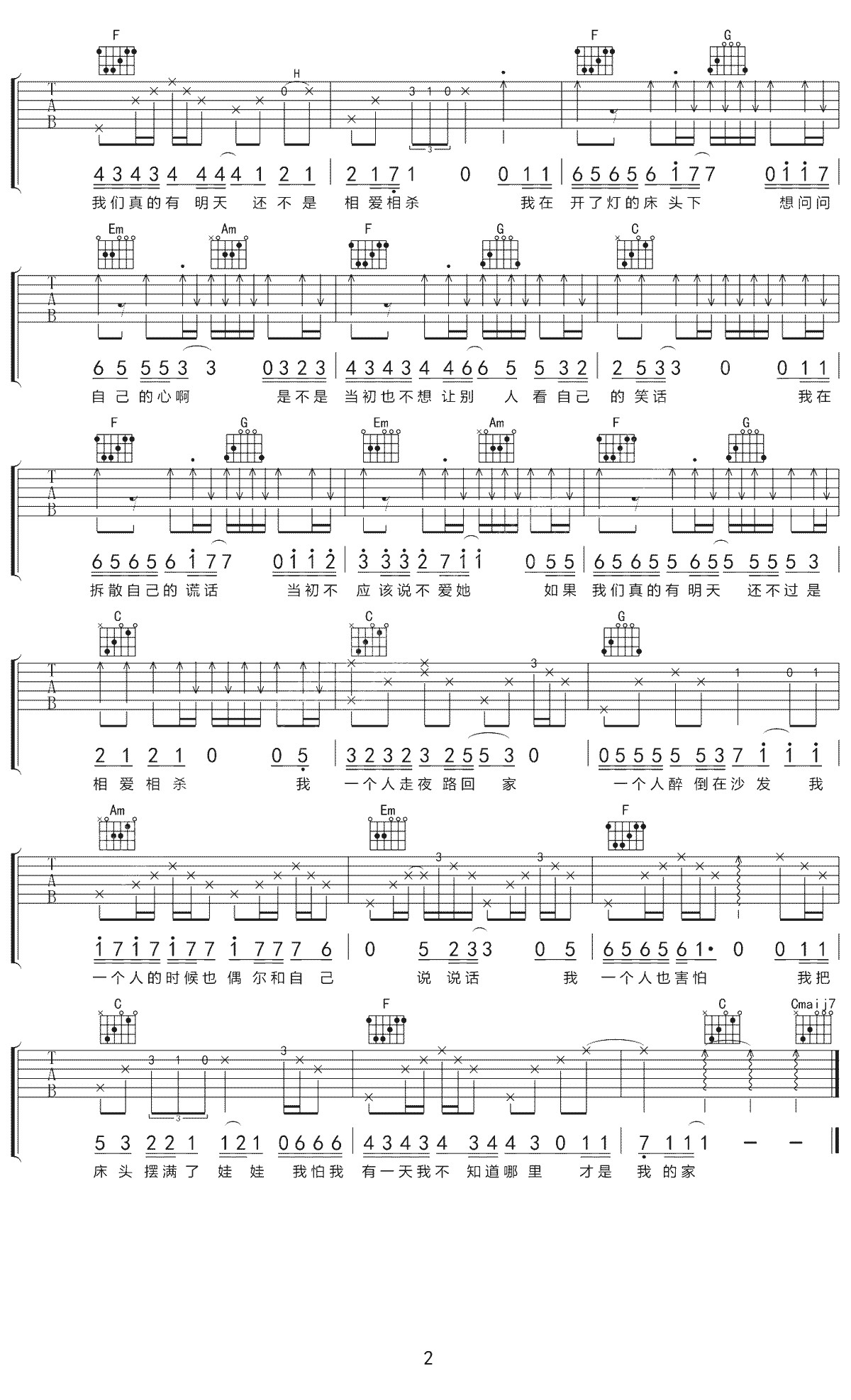 关于孤独我想说的话吉他谱 - 隔壁老樊 - C调吉他弹唱谱