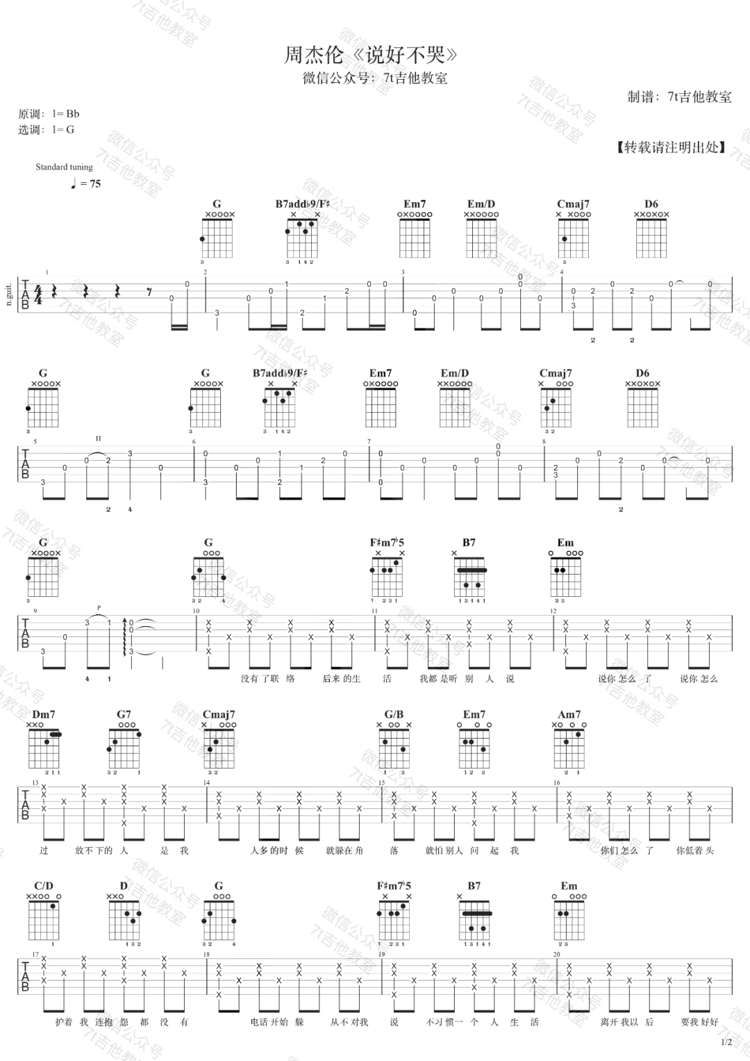 说好不哭吉他谱 - 周杰伦 - G调吉他弹唱谱