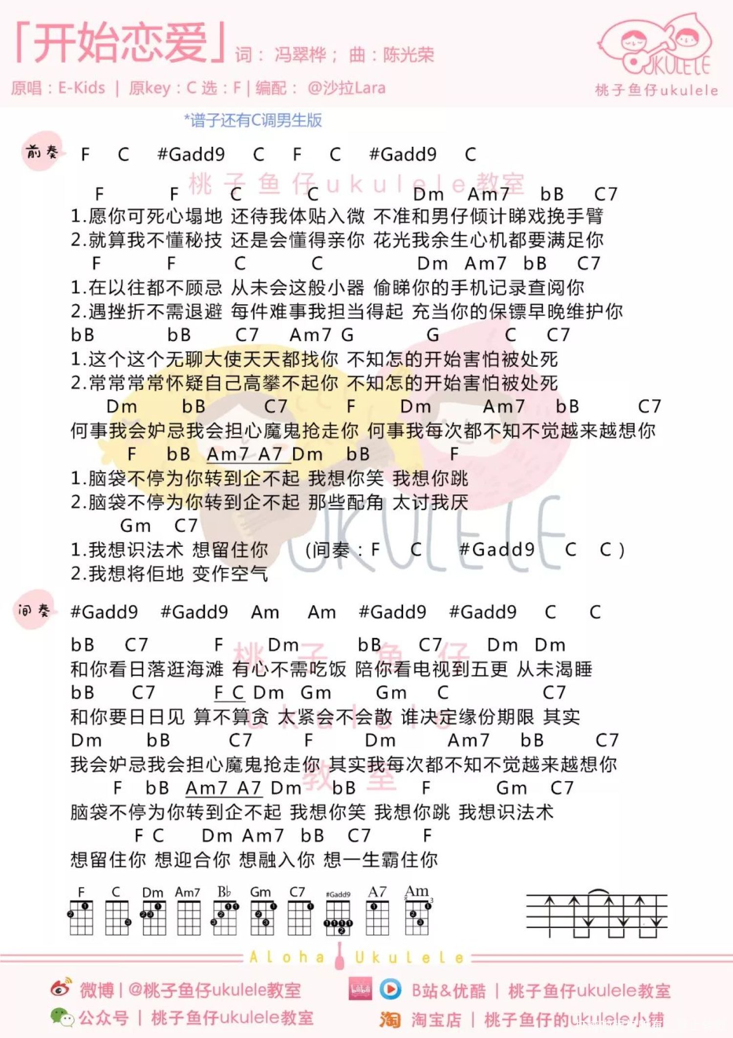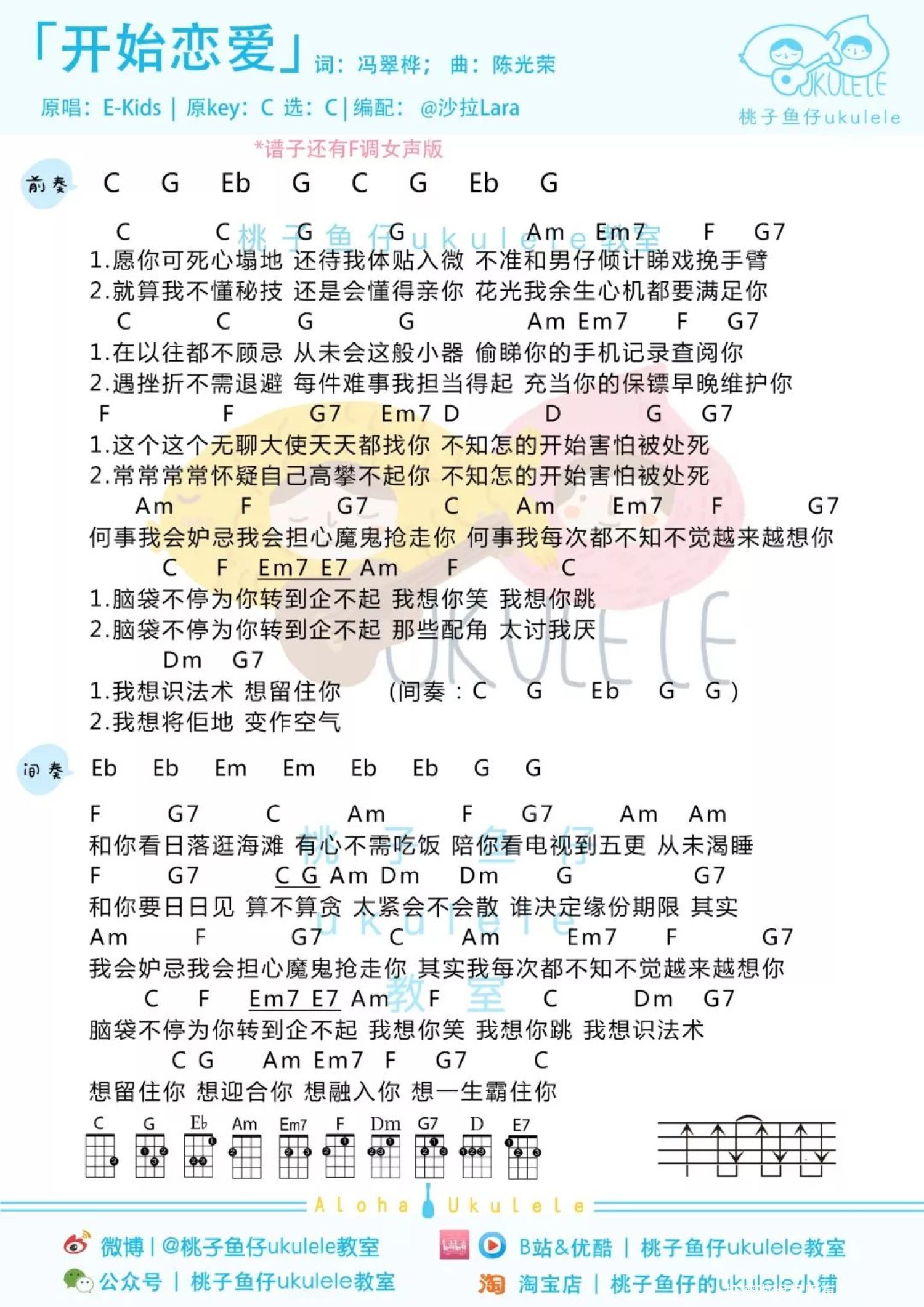 开始恋爱尤克里里谱 - E-kids