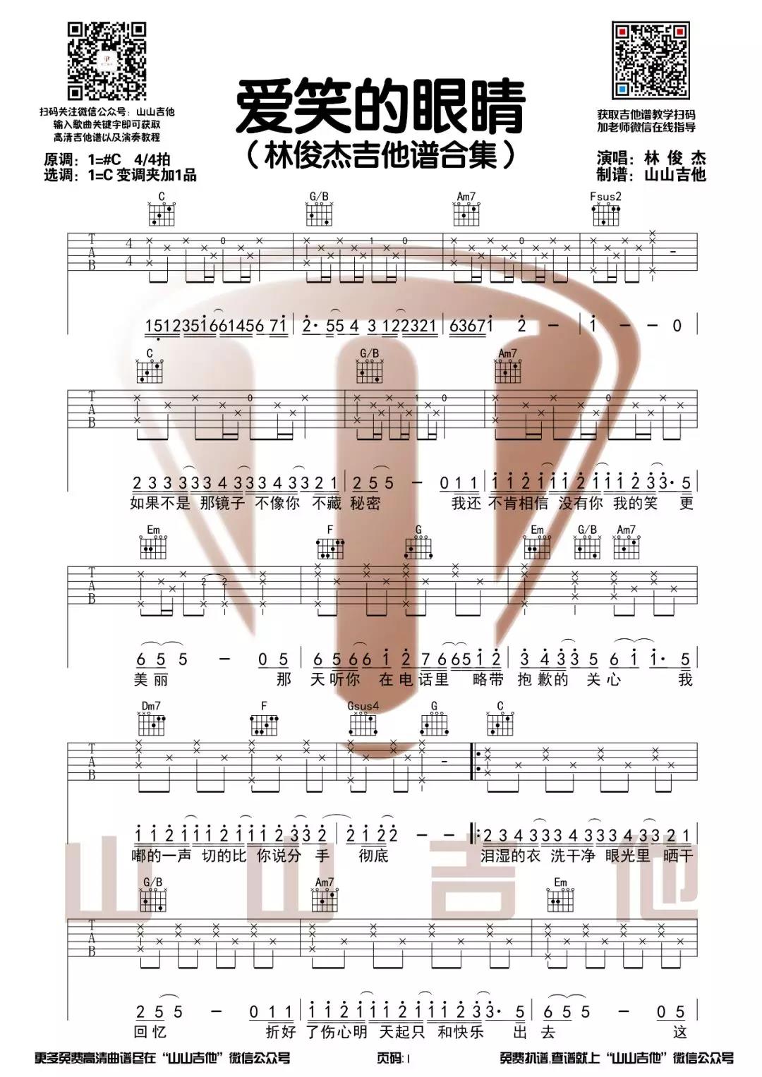 爱笑的眼睛吉他谱 - 林俊杰 - C调吉他弹唱谱