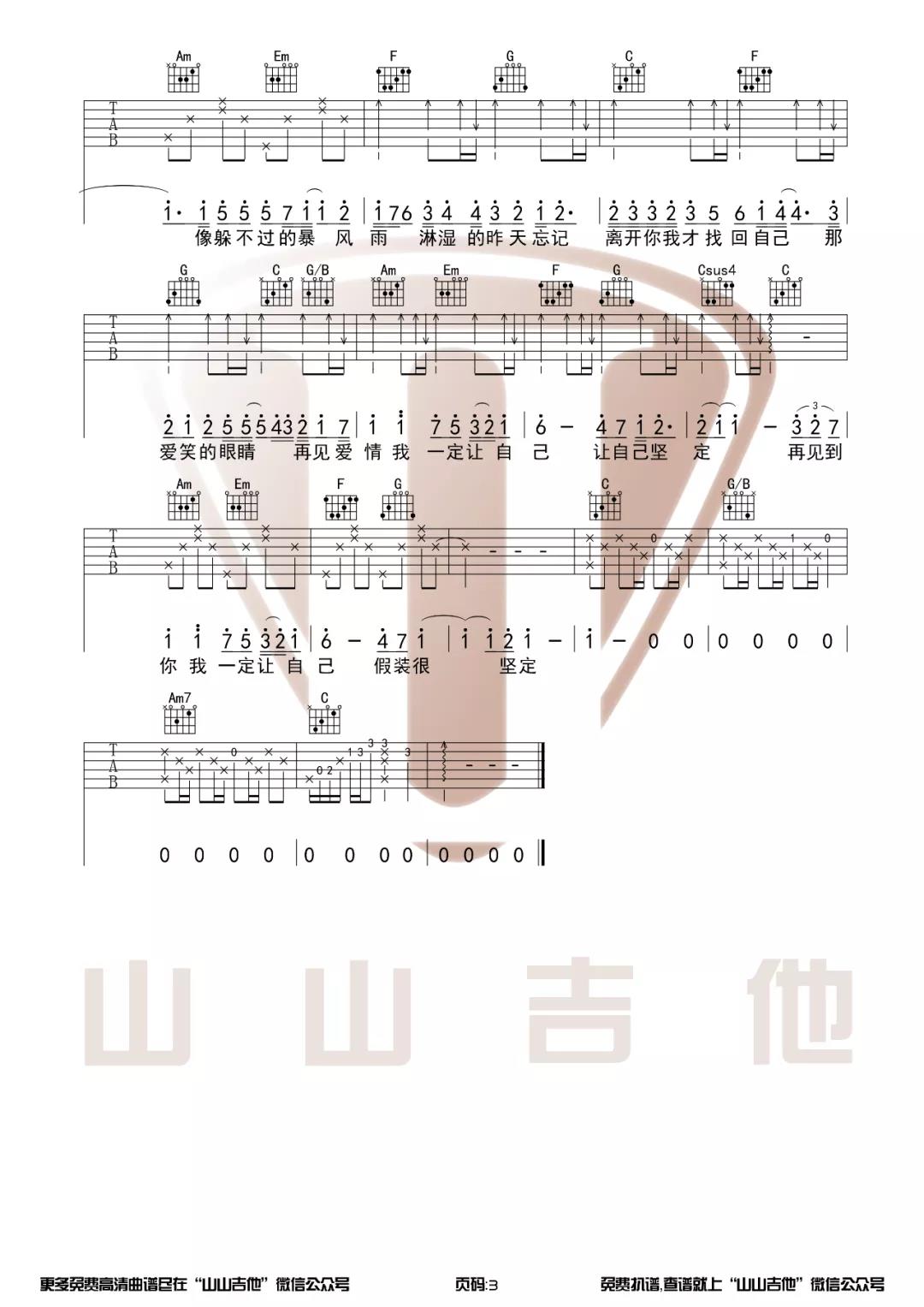 曲谱介绍: 吉他乐谱使用C调和弦编配,变调夹可以夹在一品,即可匹配原调音准,感谢山山老师录制了一段演示视频供大家学习。
