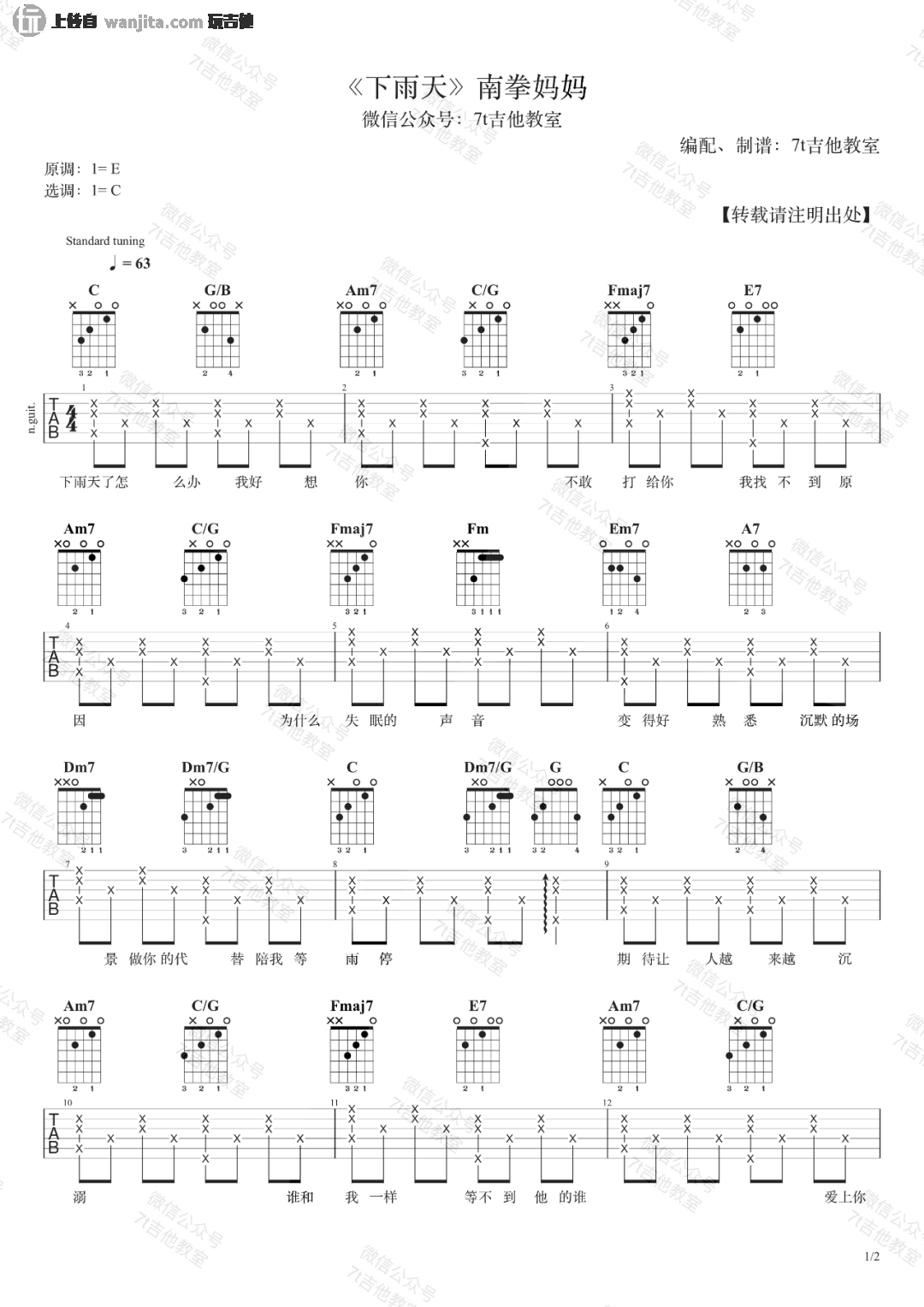 下雨天吉他谱 - 南拳妈妈 - 吉他弹唱谱