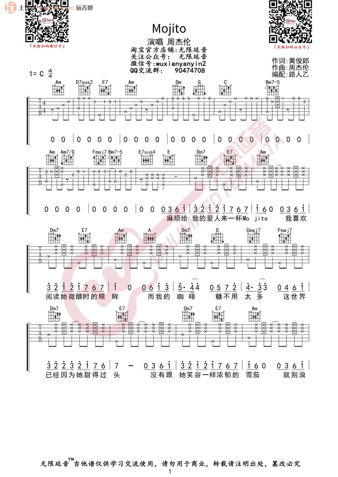 Mojito吉他谱 - 周杰伦 - C调吉他弹唱谱