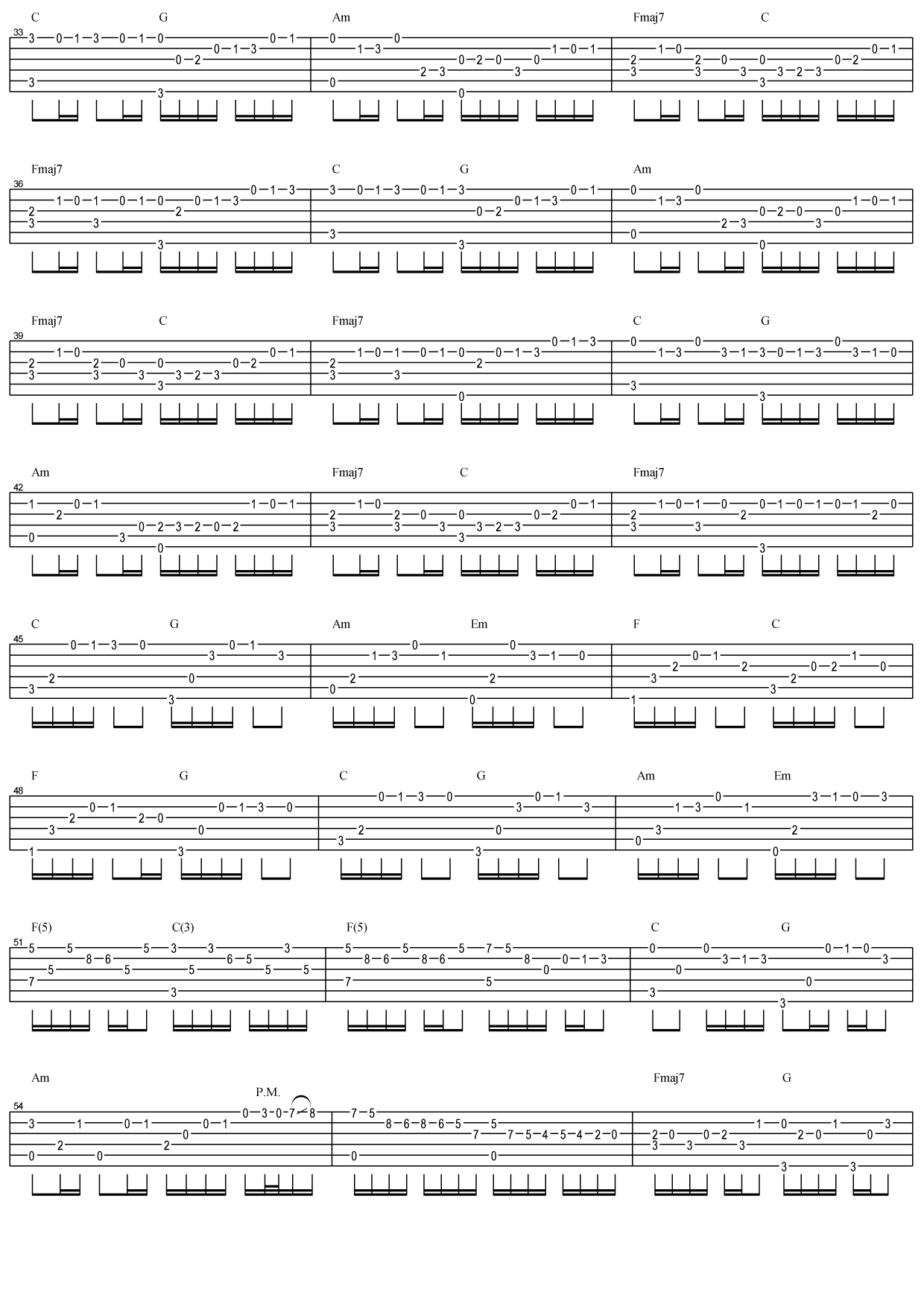 卡农吉他谱 - 吉他名曲 - C调吉他独奏谱