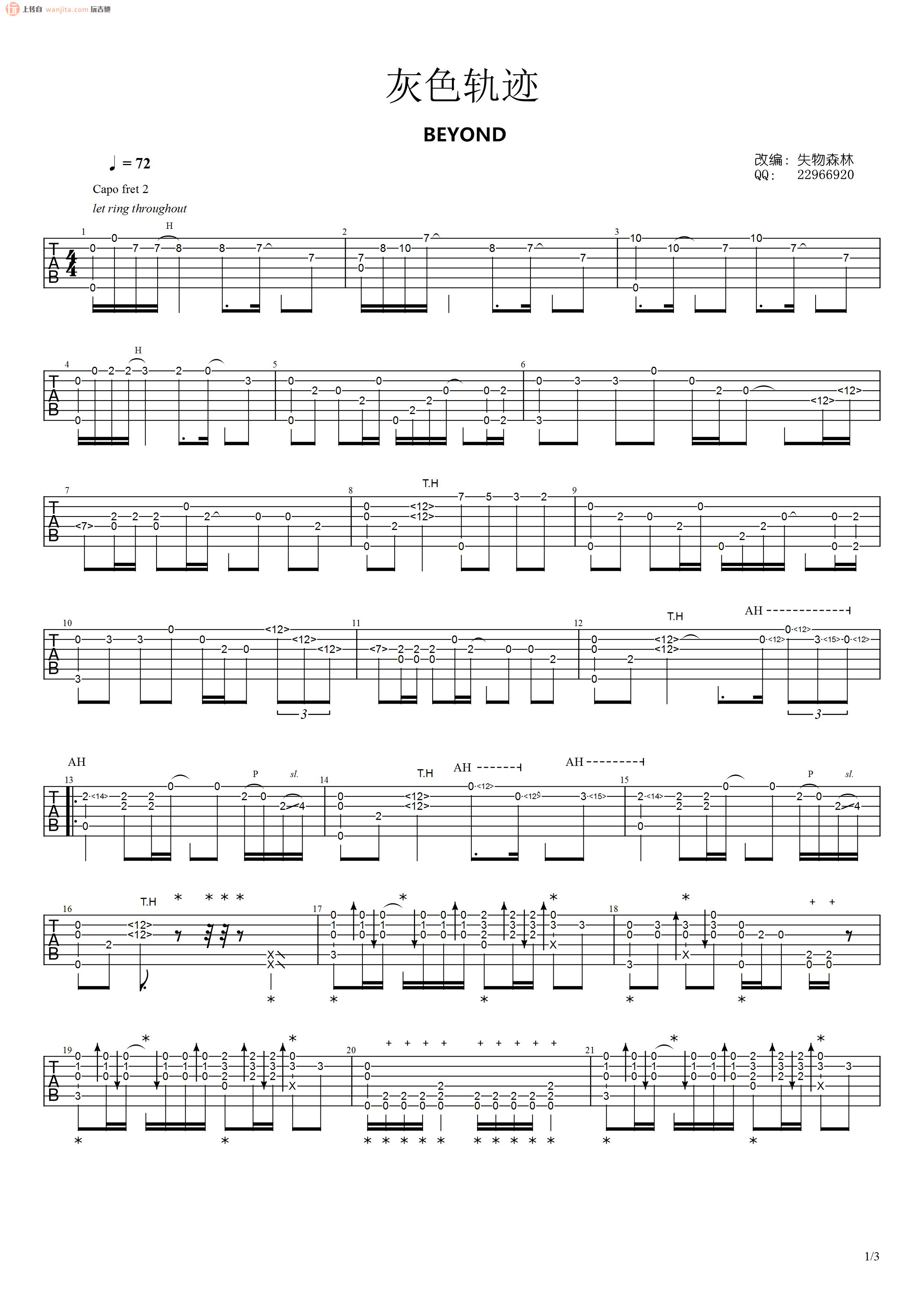 灰色轨迹吉他谱 - Beyond - 吉他独奏谱