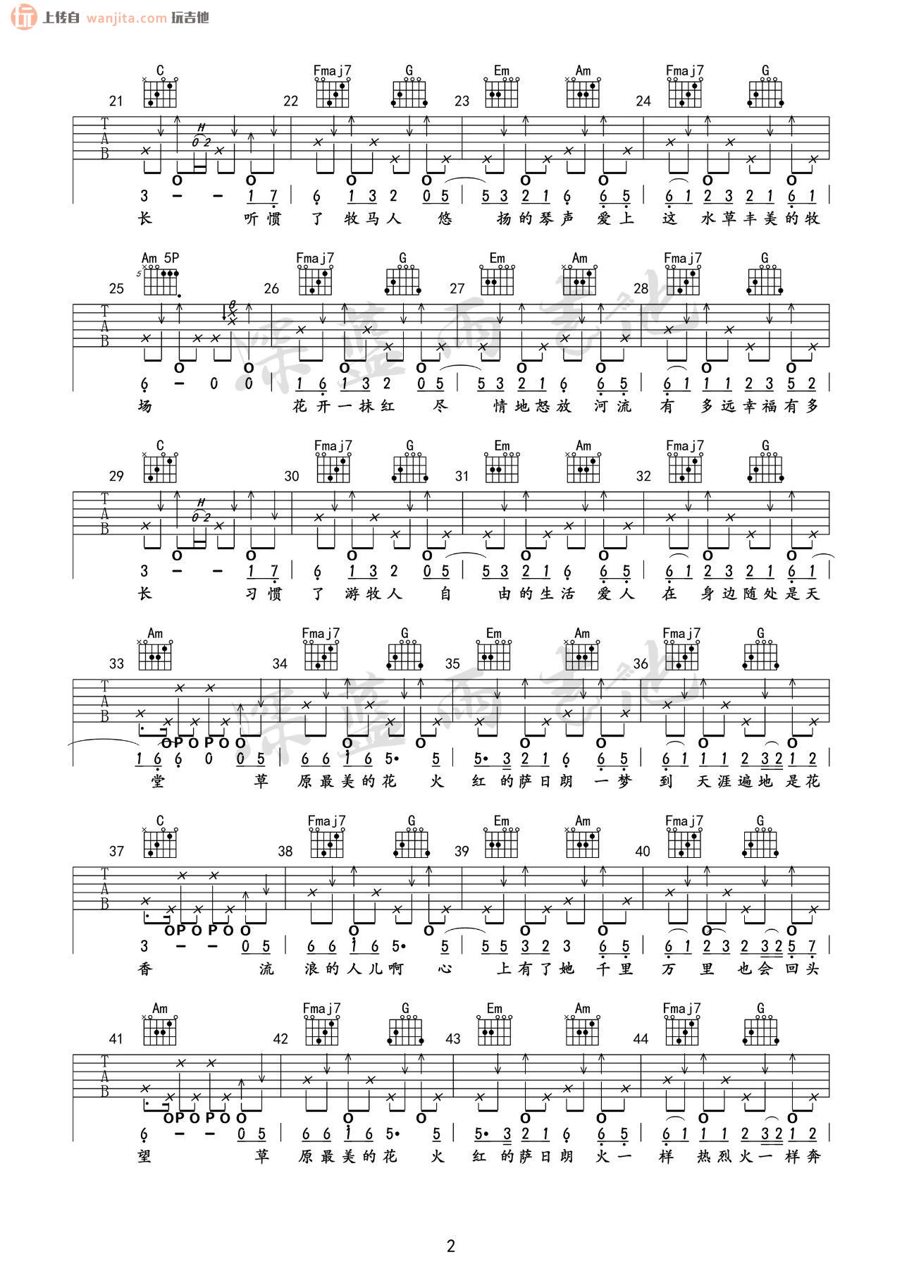 当前位置:琴谱网>吉他弹唱>火红的萨日朗
