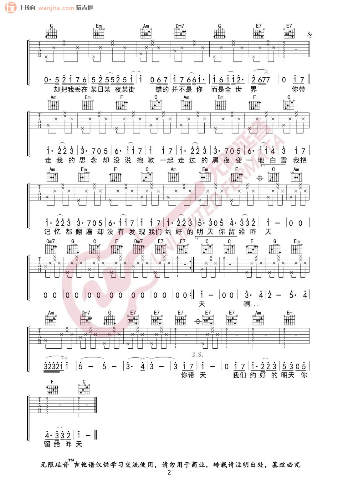 后会无期吉他谱 - 汪苏泷,徐良 - C调吉他弹唱谱