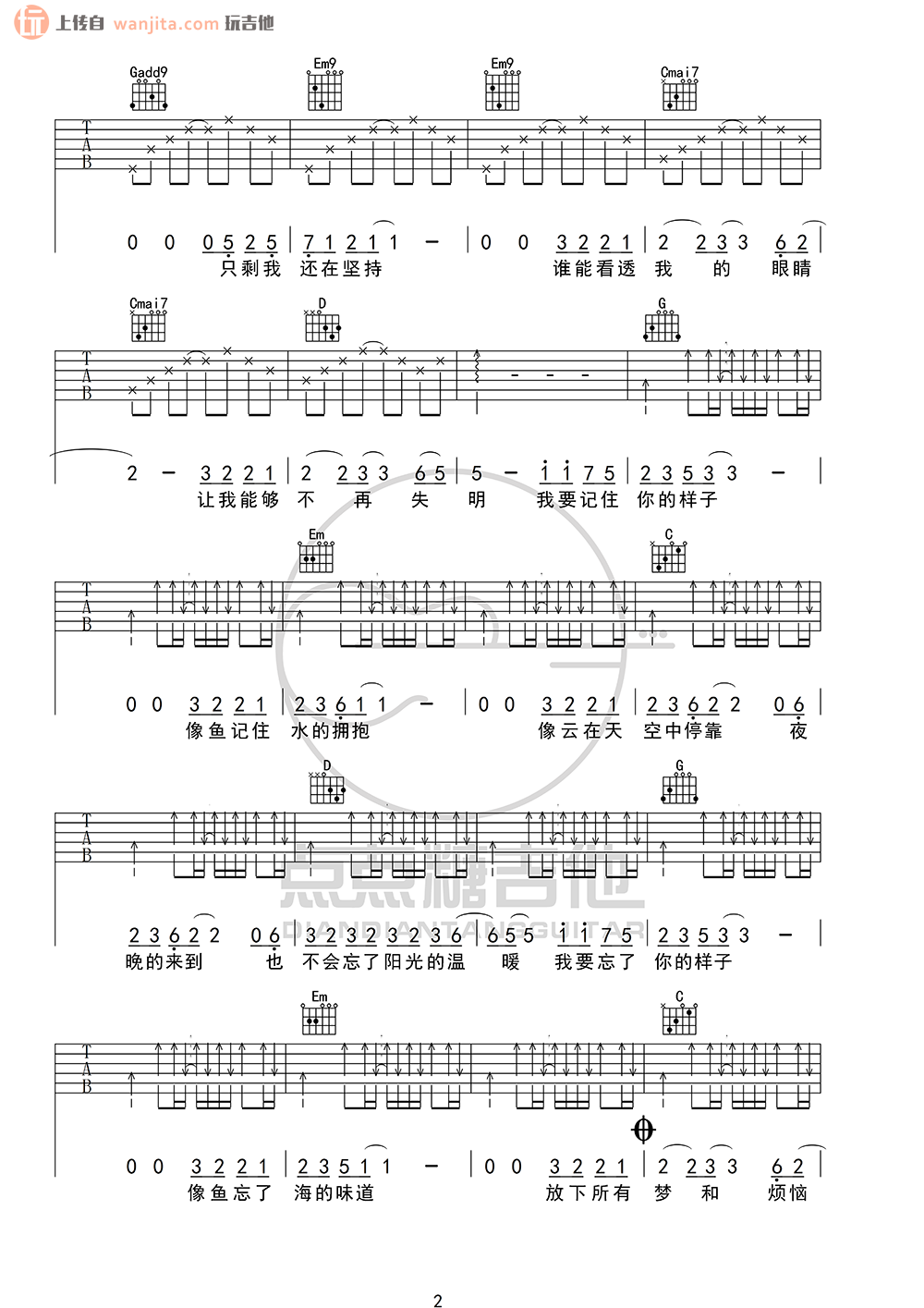 像鱼吉他谱 - 王贰浪 - G调吉他弹唱谱