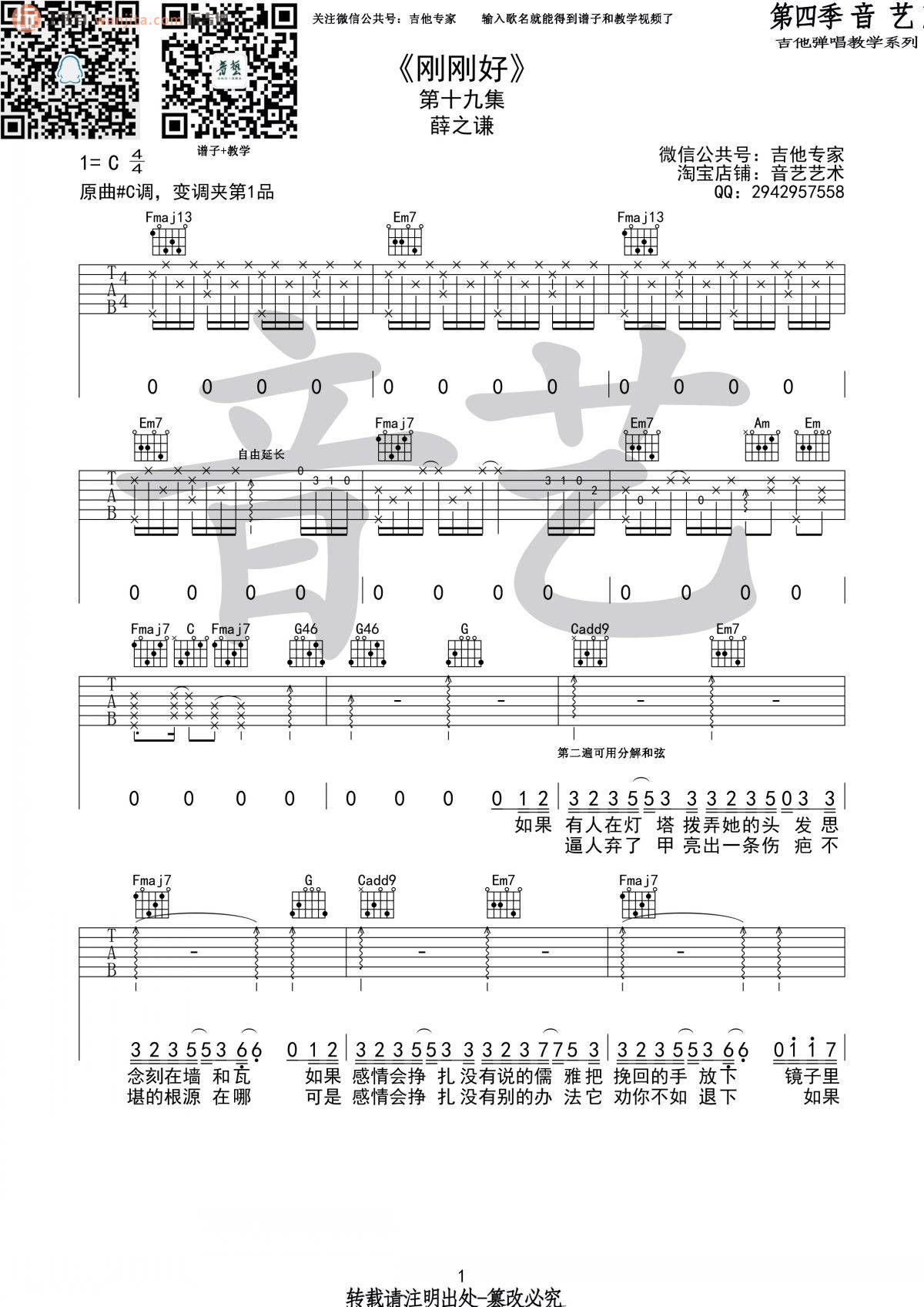 刚刚好吉他谱 - 薛之谦 - C调吉他弹唱谱