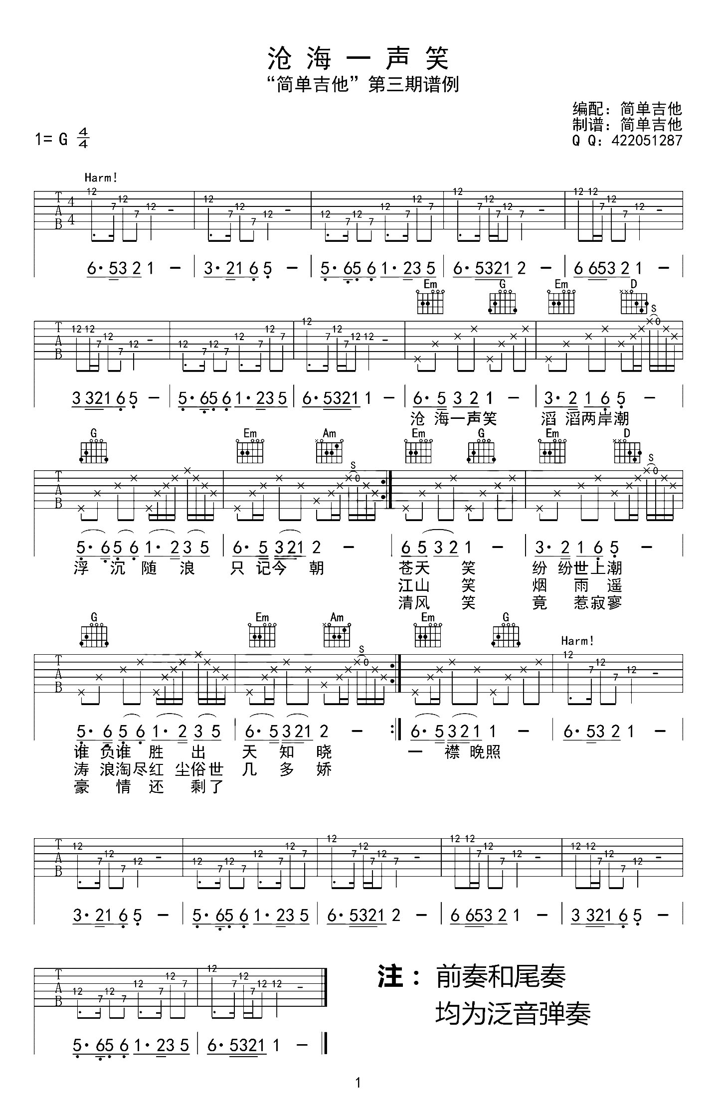 当前位置:琴谱网>吉他弹唱>沧海一声笑