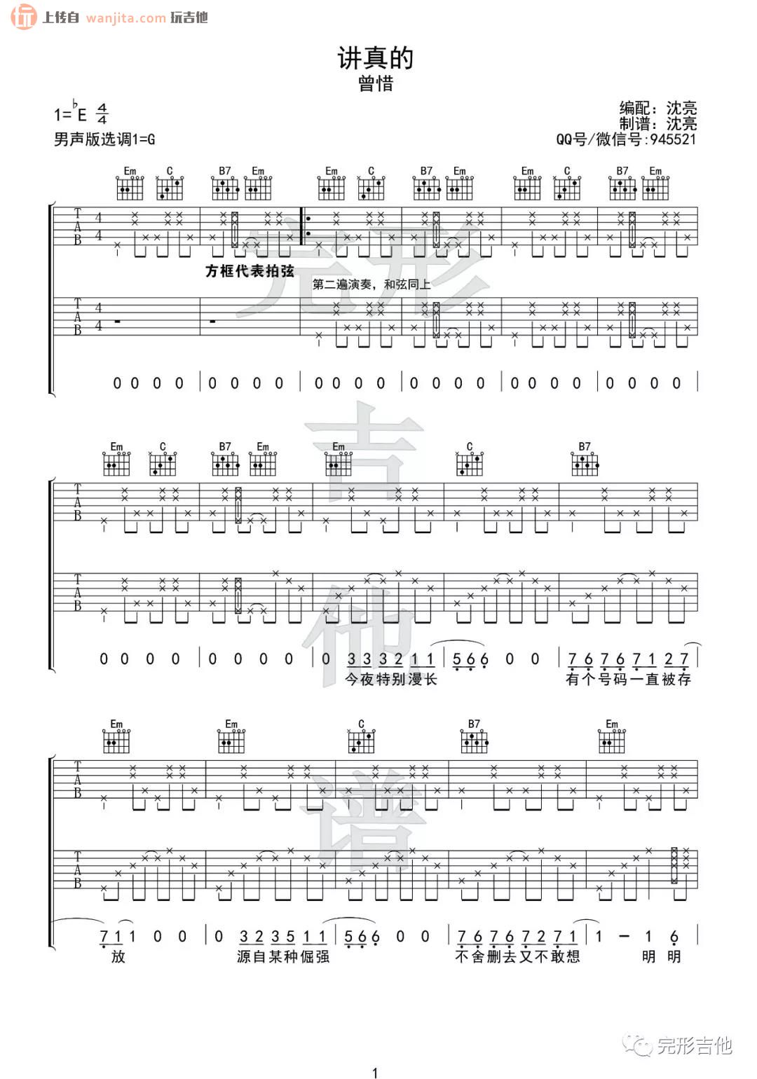 讲真的吉他谱 - 曾惜 - G调吉他弹唱谱