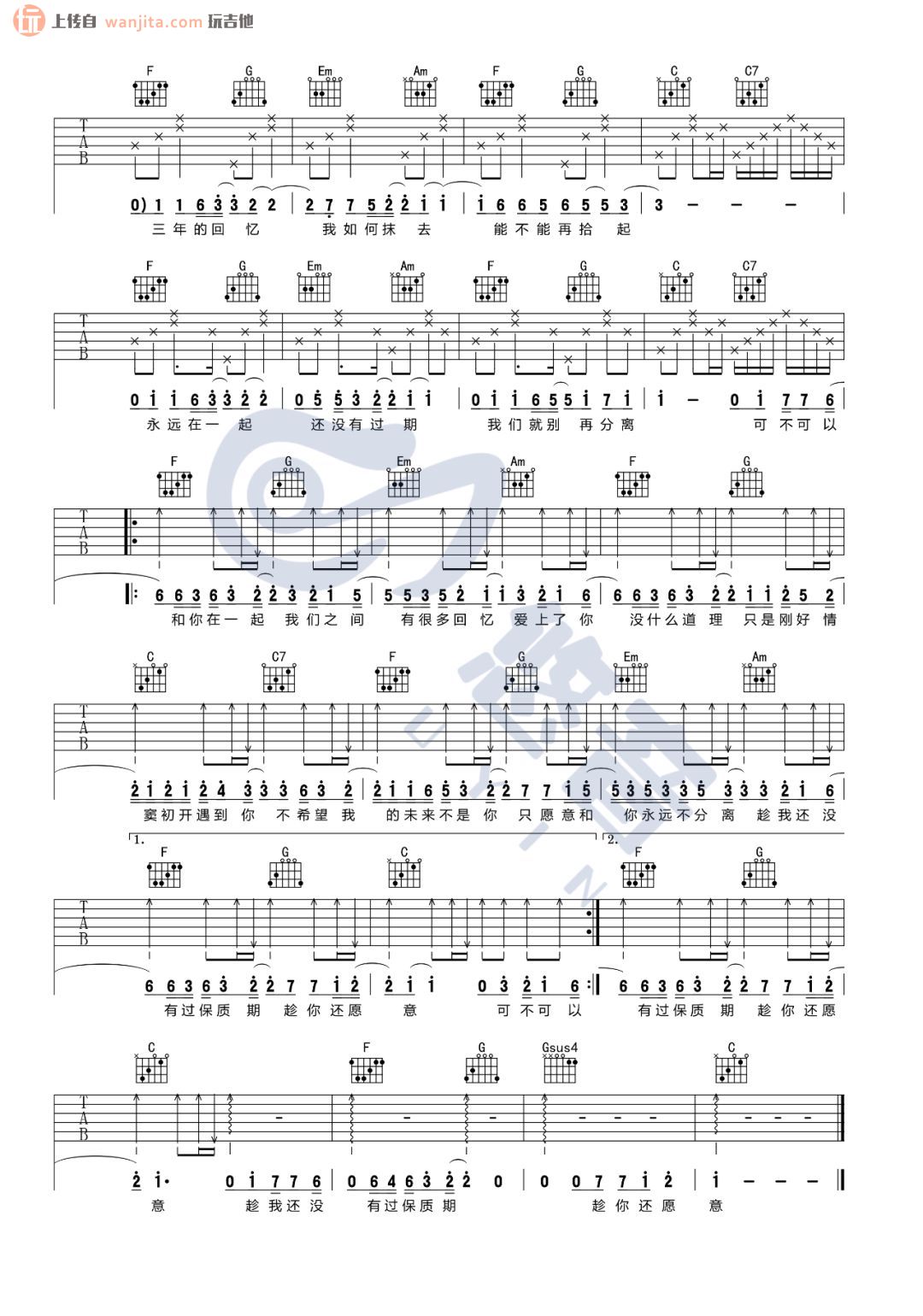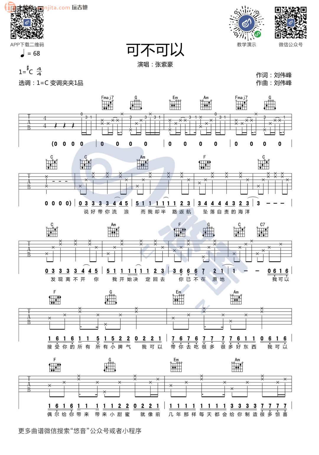 当前位置:琴谱网>吉他弹唱>可不可以