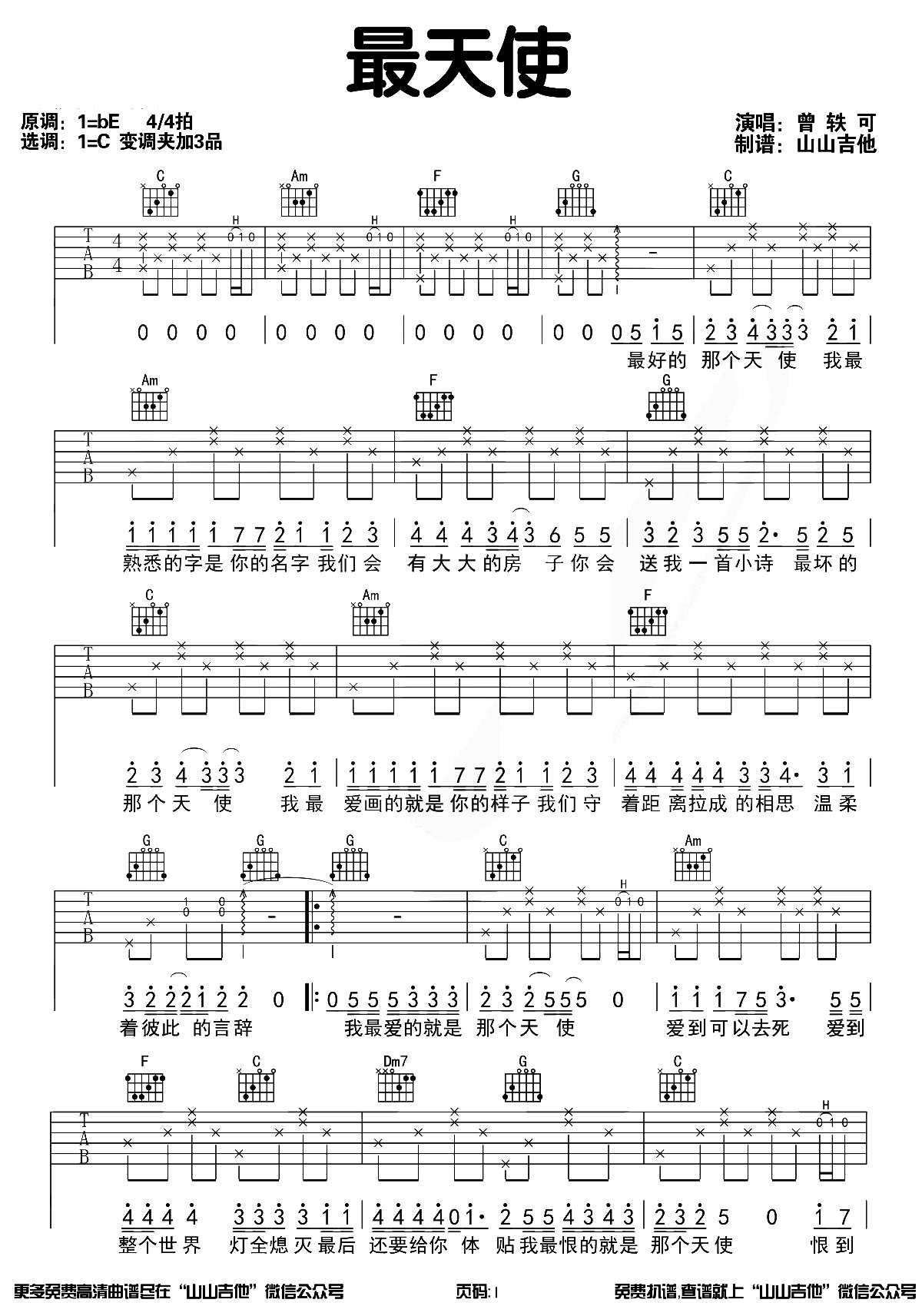 最天使吉他谱 - 曾轶可 - C调吉他弹唱谱