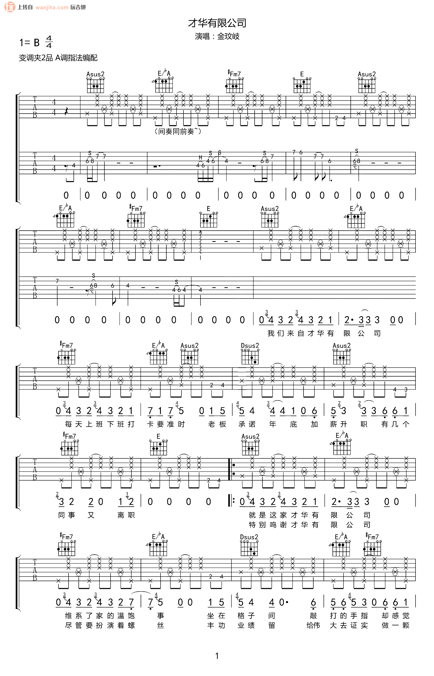 才华有限公司吉他谱 - 金玟岐 - A调吉他弹唱谱 - 原版