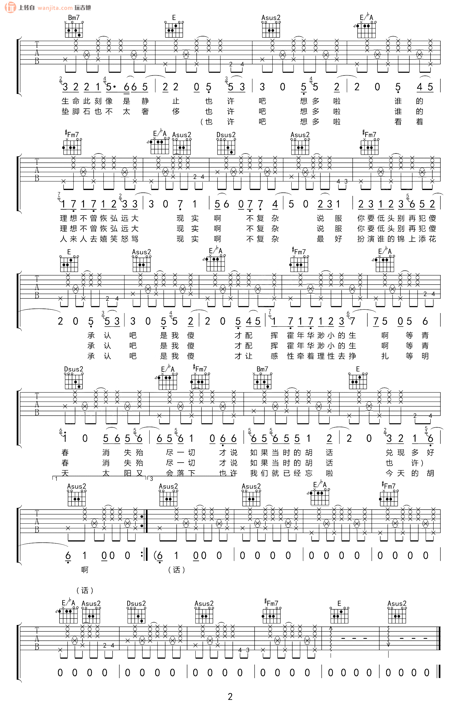 曲谱介绍: 才华有限公司吉他谱原调是B调,选用了A调指法编配,变调夹夹在2品版本几乎是按原本编配,这首歌曲主要以半分解和弦拍弦弹唱,喜欢的朋友可以试试这首好听的歌曲。