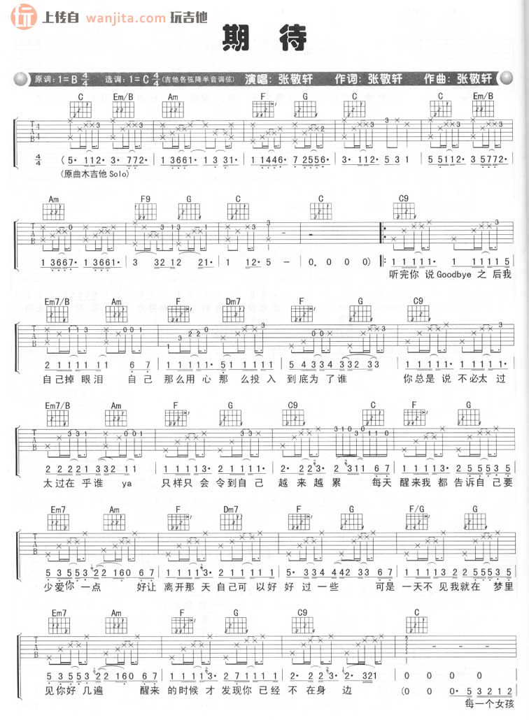 期待吉他谱 - 张敬轩 - C调吉他弹唱谱 - 原版