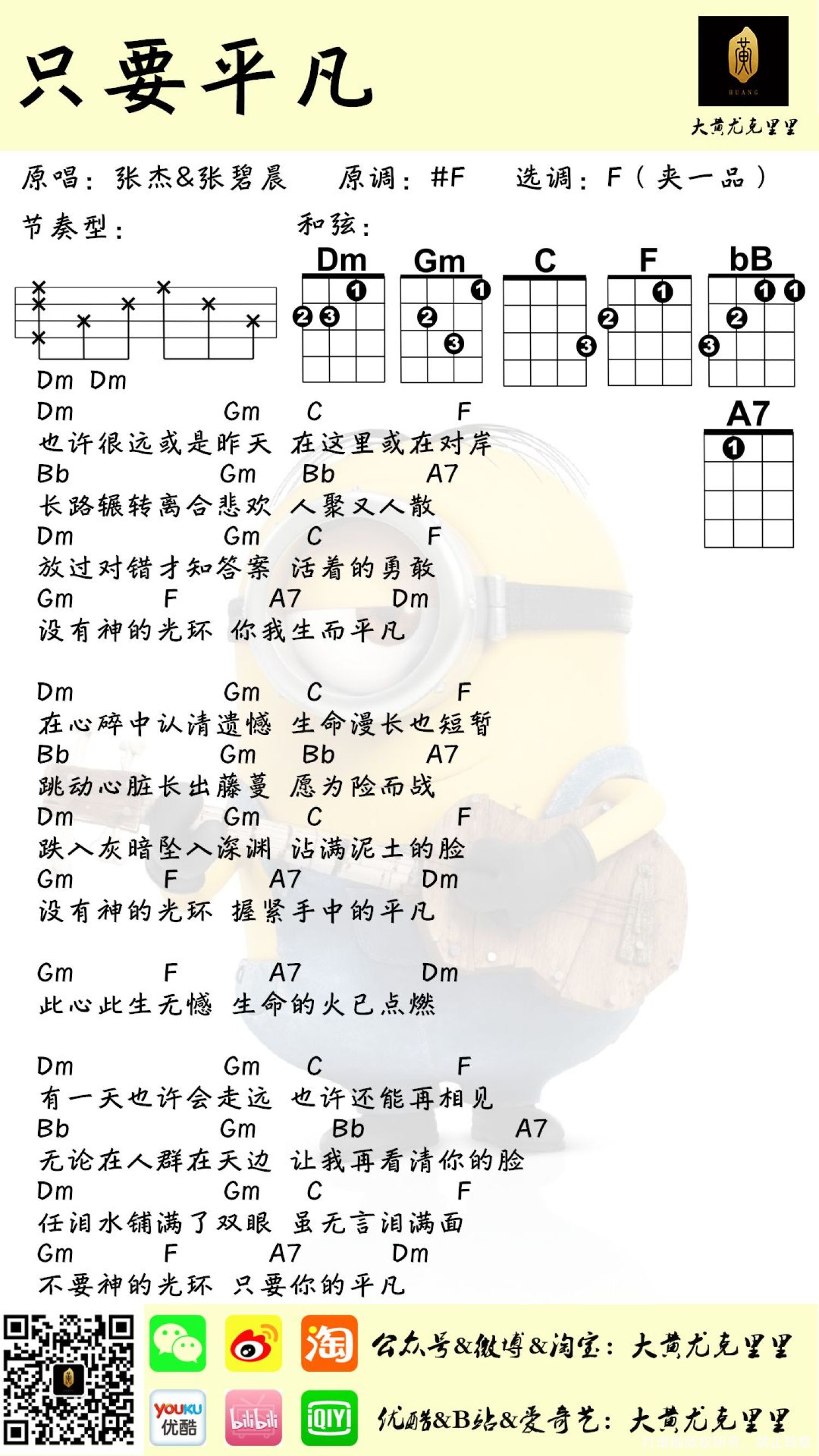 曲谱介绍: 《只要平凡》尤克里里谱 《我不是药神》今天正式公映了,不出意外的话它将会成为一部现象级电影。 我大学读的是医学院,学校的附属医院离得不远,老师们很多也是医生。一有空,我就去医院串门,也因此见了许许多多的生老病死。后来学药,了解了药品行业的重重内幕,更是深感无力。 你到过下午三点的重症病房吗?微风徐徐,阳光照在洁白的窗帘上,周围非常安静。是的,没有悲伤,没有哭泣,只有枯槁的面容和微弱的气息。推走一个,又来一个,习以为常。 记得冯唐说过:实在放不下的时候,去趟重症病房或者墓地,你容易明白,你已经得到太多,再要就是贪婪,时间太少,好玩儿的事儿太多,从尊重生命的角度,不必纠缠。 “他只有20岁,他就想活命他有什么罪!”片中的这句台词,让我动容不已。是呀,活着艰难,想活着有时却更艰难。现实如此,但并非不可改变,让更多的人了解并为改变而努力,《我不是药神》是个非常好的引子。所以,我诚心向大家推荐这部电影。