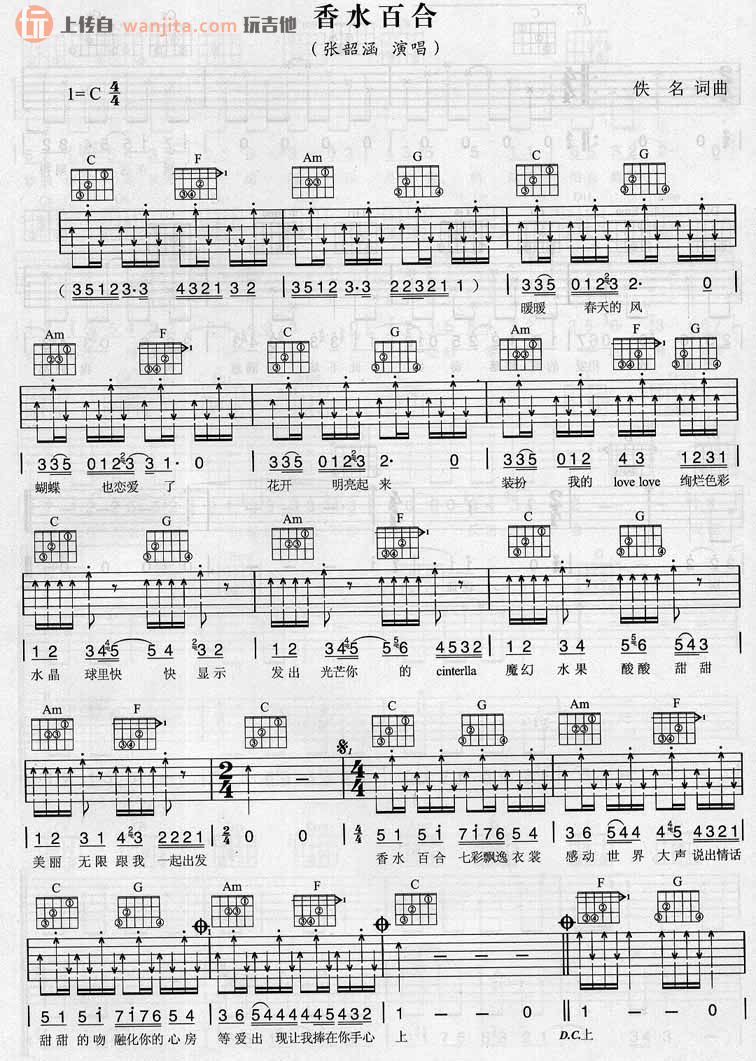 香水百合吉他谱 - 张韶涵 - C调吉他弹唱谱