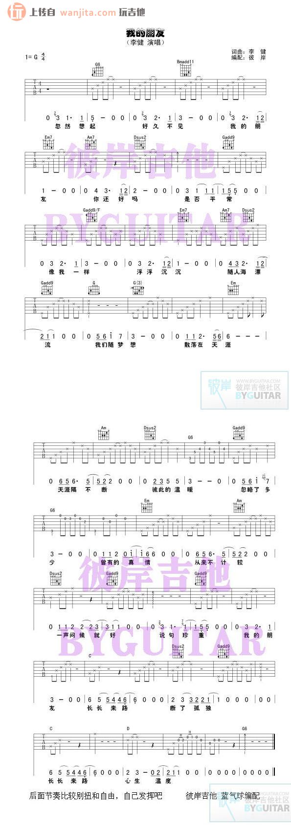 我的朋友吉他谱 - 李健 - G调吉他弹唱谱