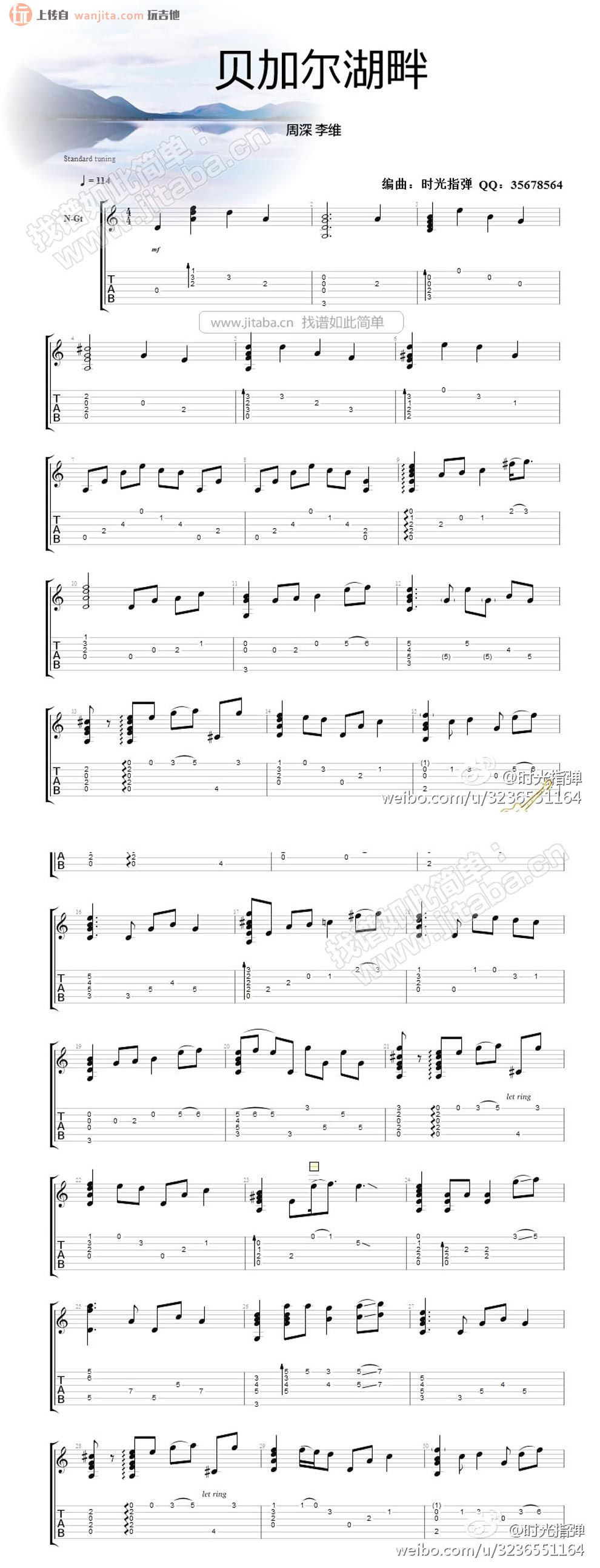 曲谱介绍: 李健《贝加尔湖畔》吉他独奏谱,共有1张高清图谱,免翻页排版设计。