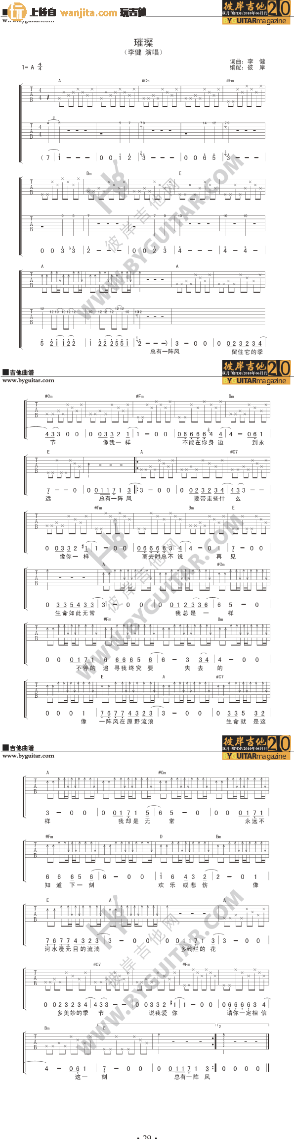 璀璨吉他谱 - 李健 - A调吉他弹唱谱