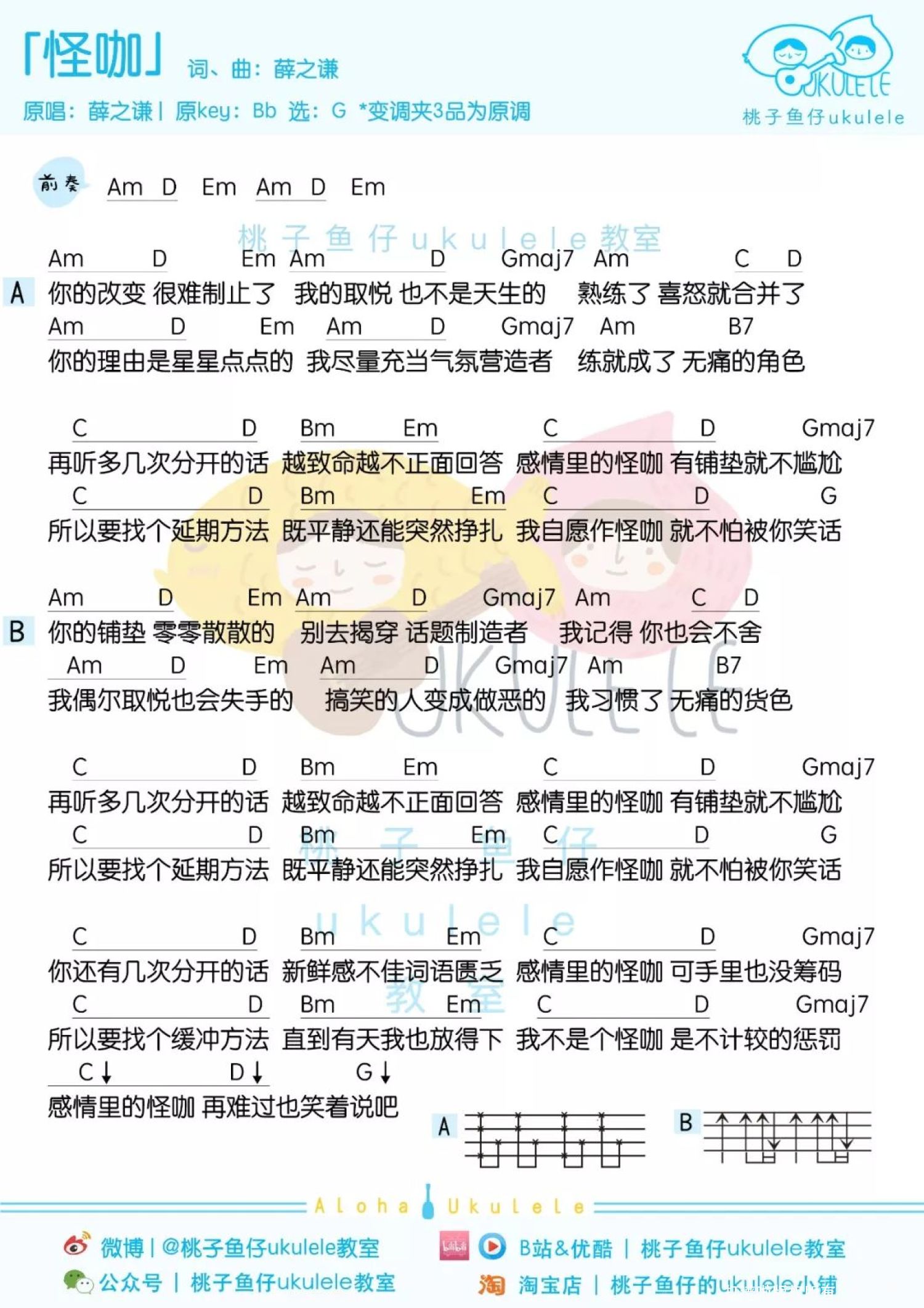 曲谱介绍: 《怪咖》尤克里里弹唱谱