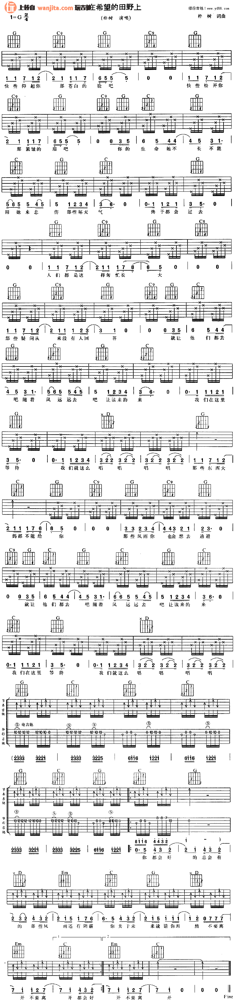 在希望的田野上吉他谱 - 朴树 - 吉他弹唱谱