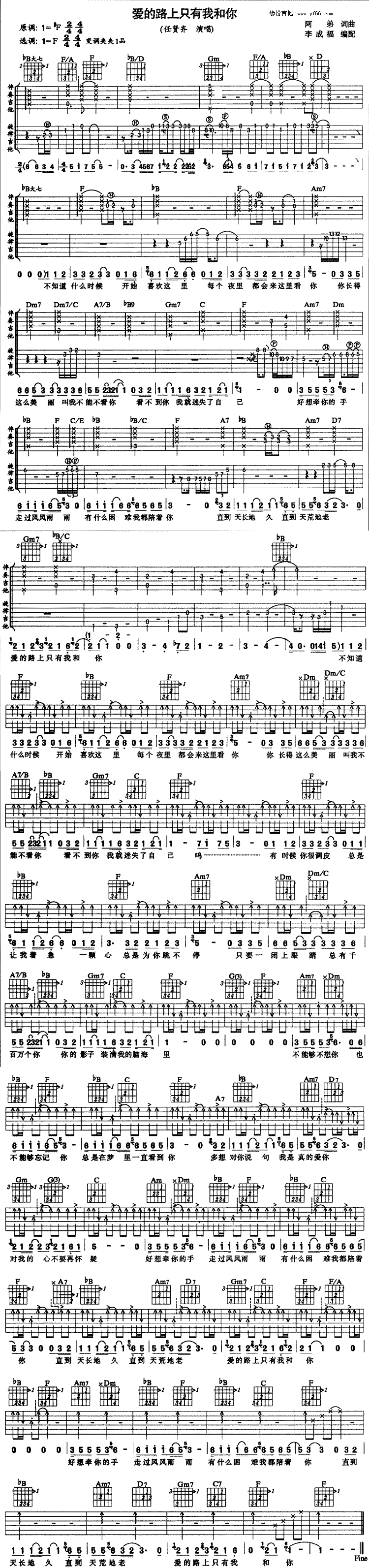当前位置:琴谱网>吉他弹唱>爱的路上只有我和你