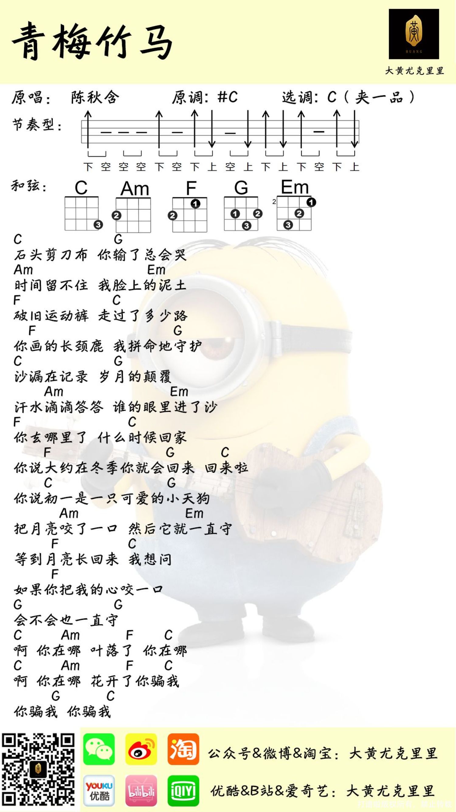 曲谱介绍: 《青梅竹马》尤克里里弹唱谱