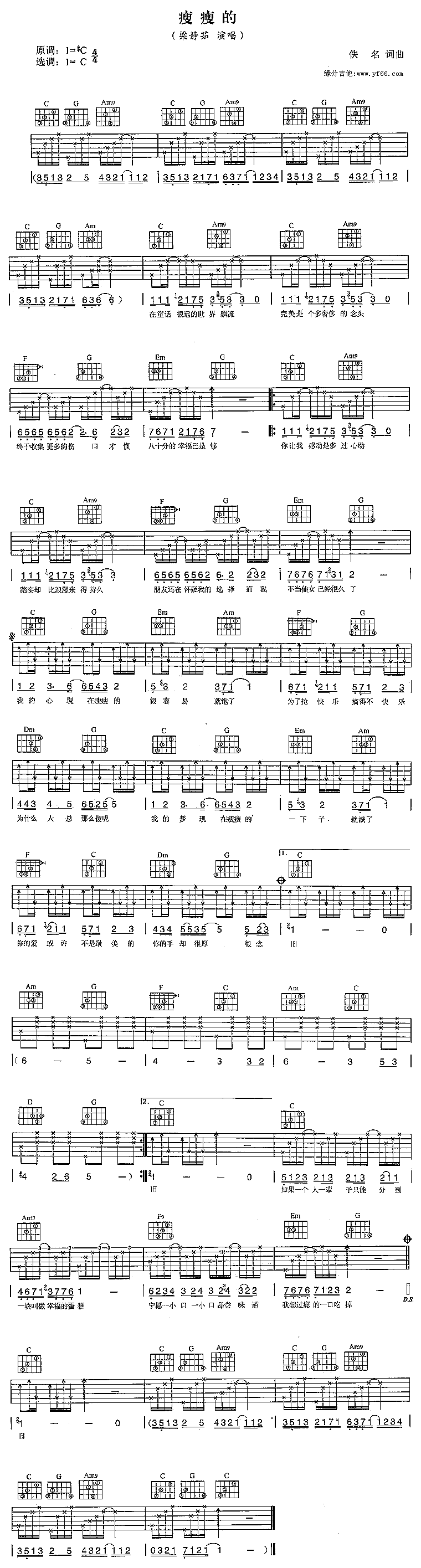 当前位置:琴谱网>吉他弹唱>瘦瘦的