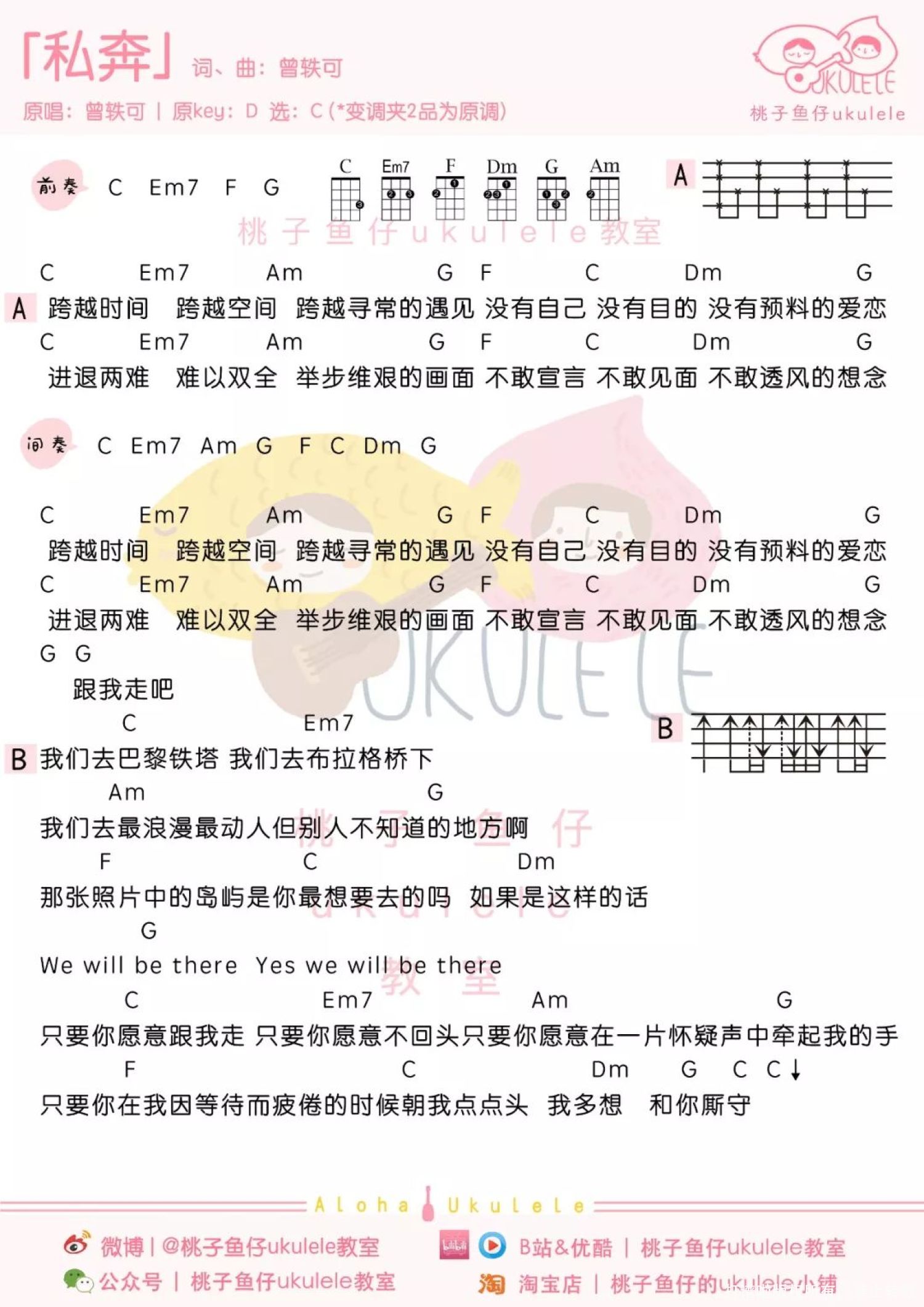 曲谱介绍: Ukulele Tutorial   私奔 尤克里里谱