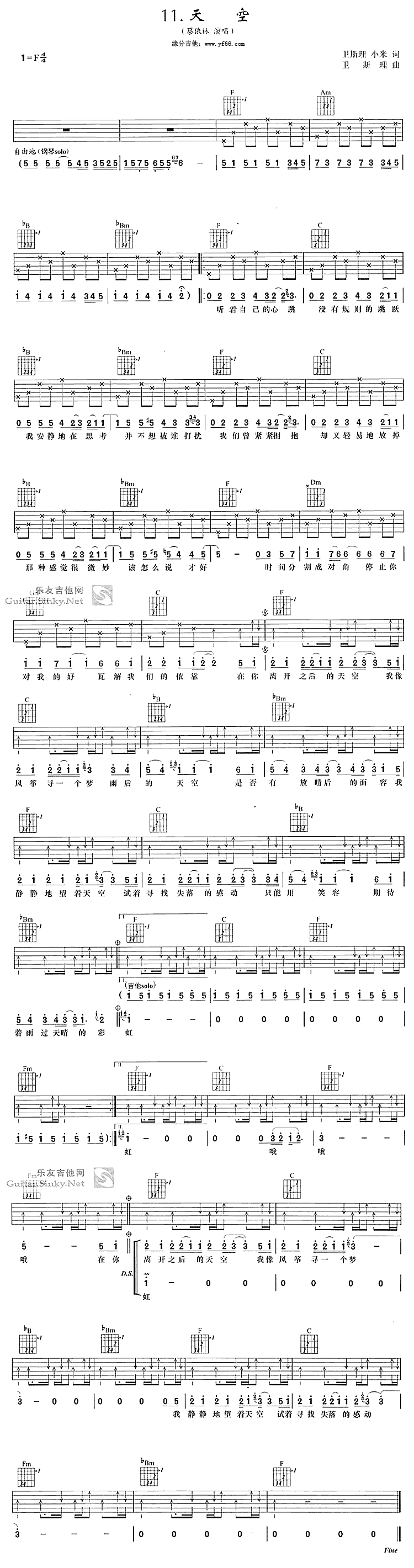 天空吉他谱 - 蔡依林 - F调吉他弹唱谱