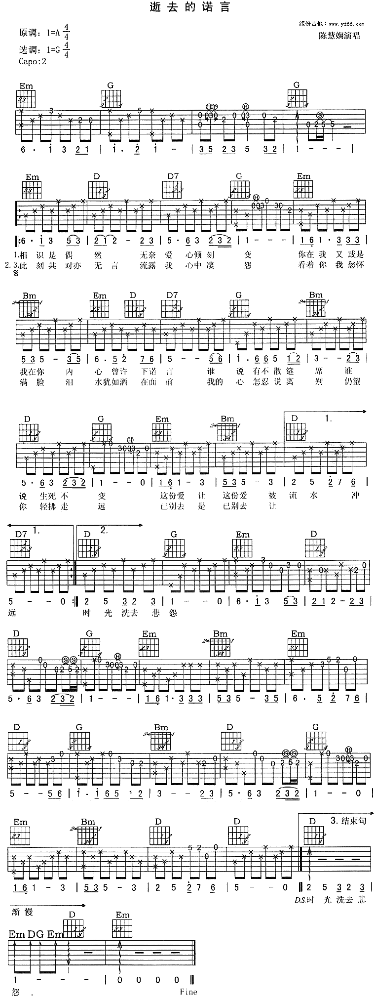逝去的诺言吉他谱 - 陈慧娴 - G调吉他弹唱谱