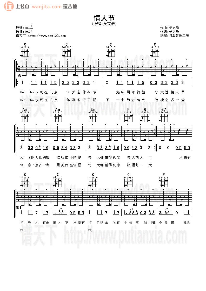 情人节吉他谱 - 吴克群 - C调吉他弹唱谱