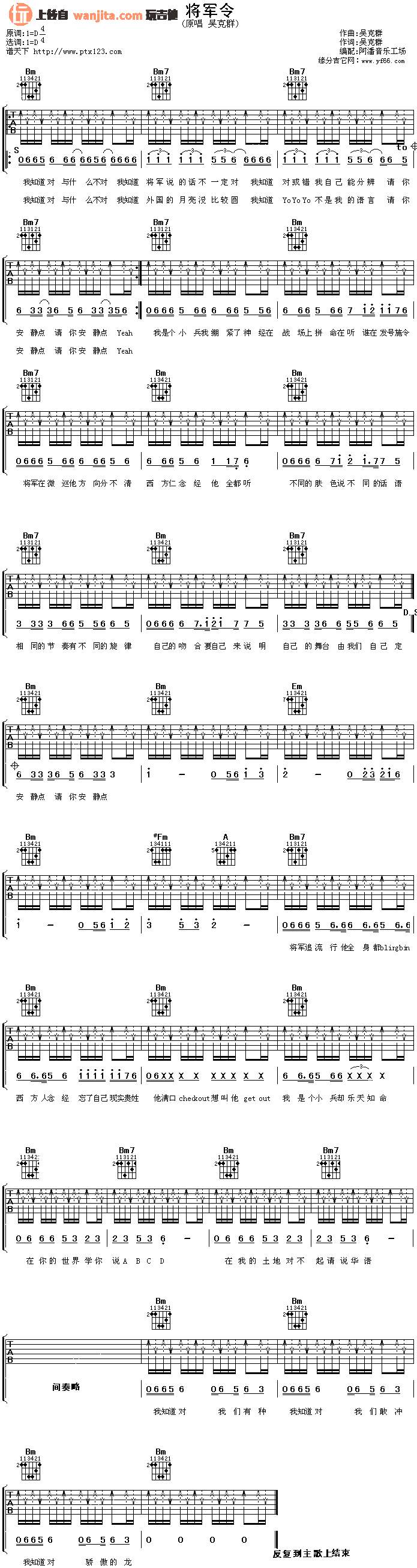 将军令吉他谱 - 吴克群 - D调吉他弹唱谱