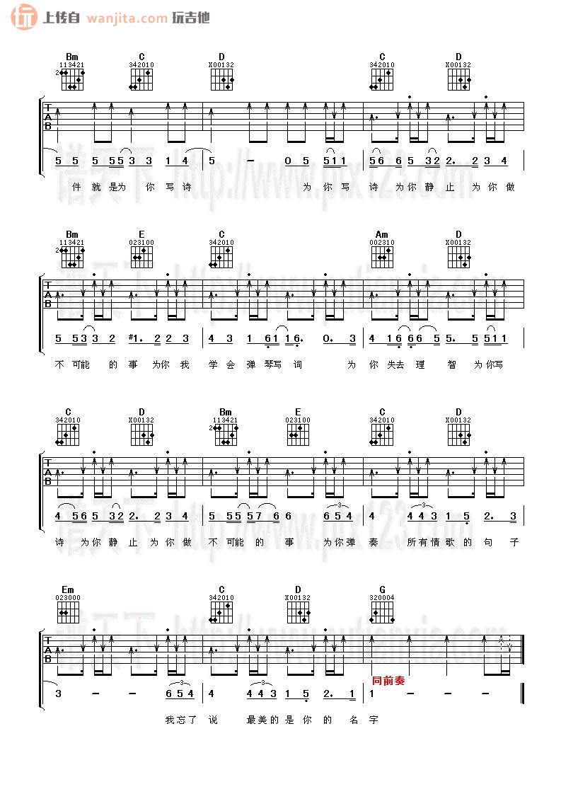 当前位置:琴谱网>吉他弹唱>为你写诗