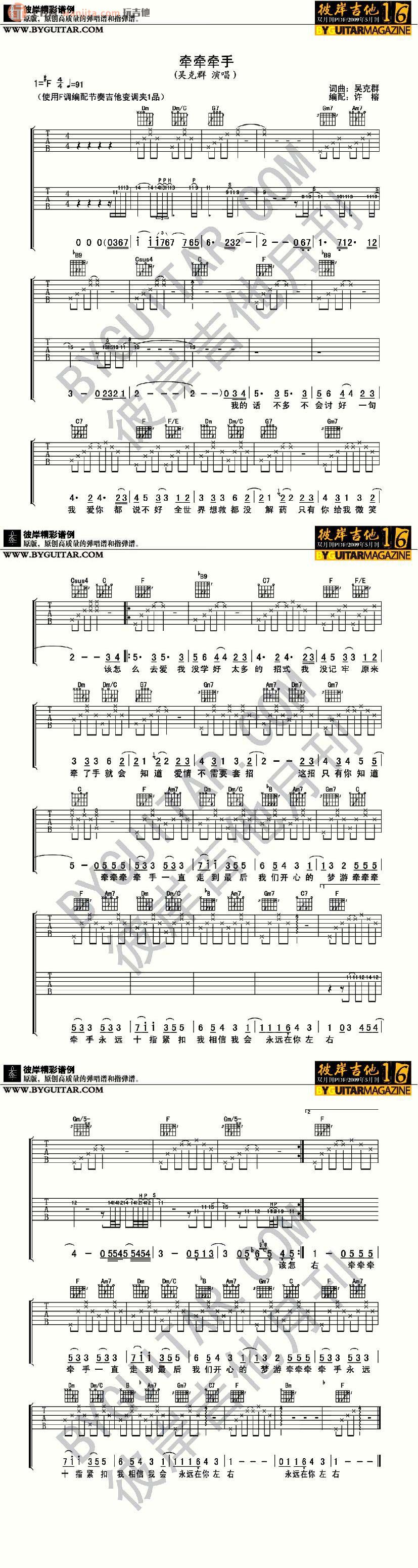 牵牵牵手吉他谱 - 吴克群 - F调吉他弹唱谱 - 原版