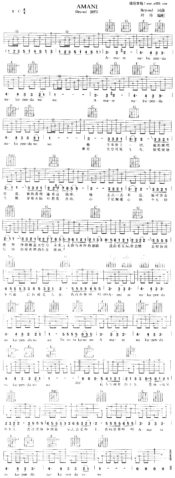 Amani吉他谱 - Beyond - C调吉他弹唱谱