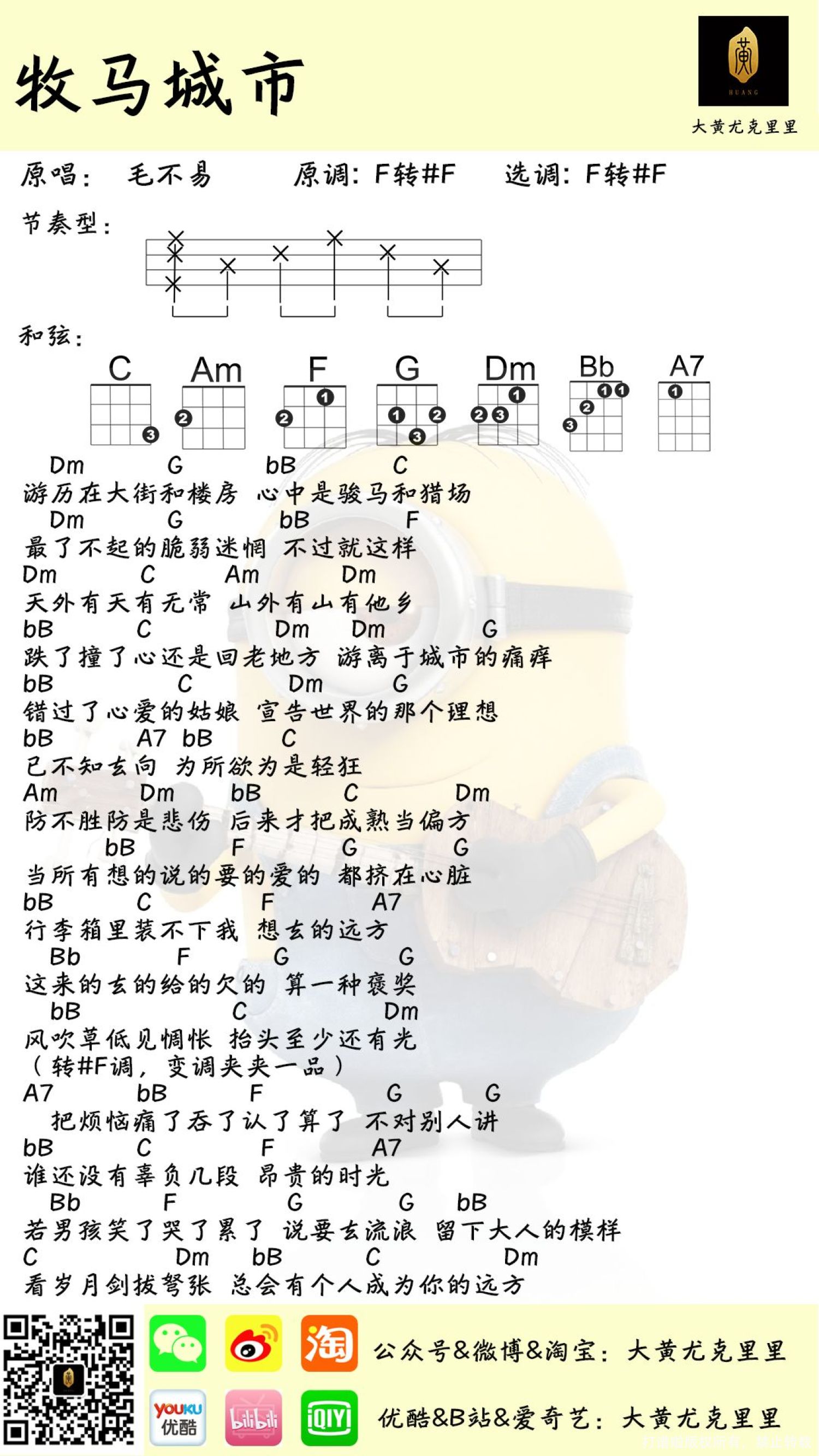 曲谱介绍: 《牧马城市》尤克里里弹唱谱