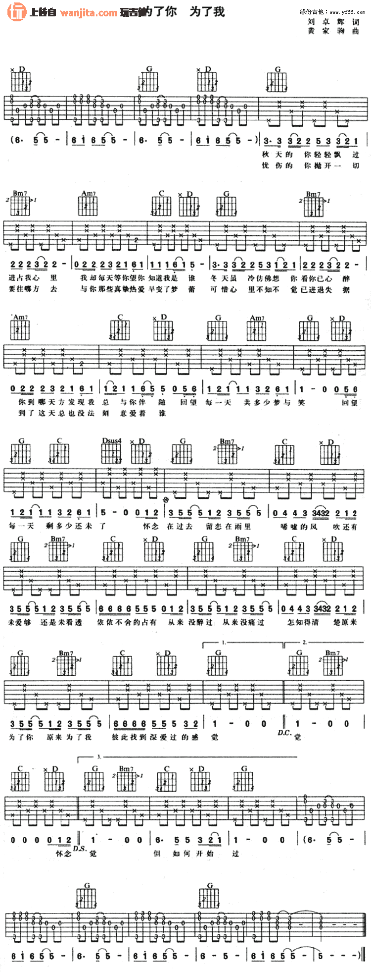 当前位置:琴谱网>吉他弹唱>为了你 为了我