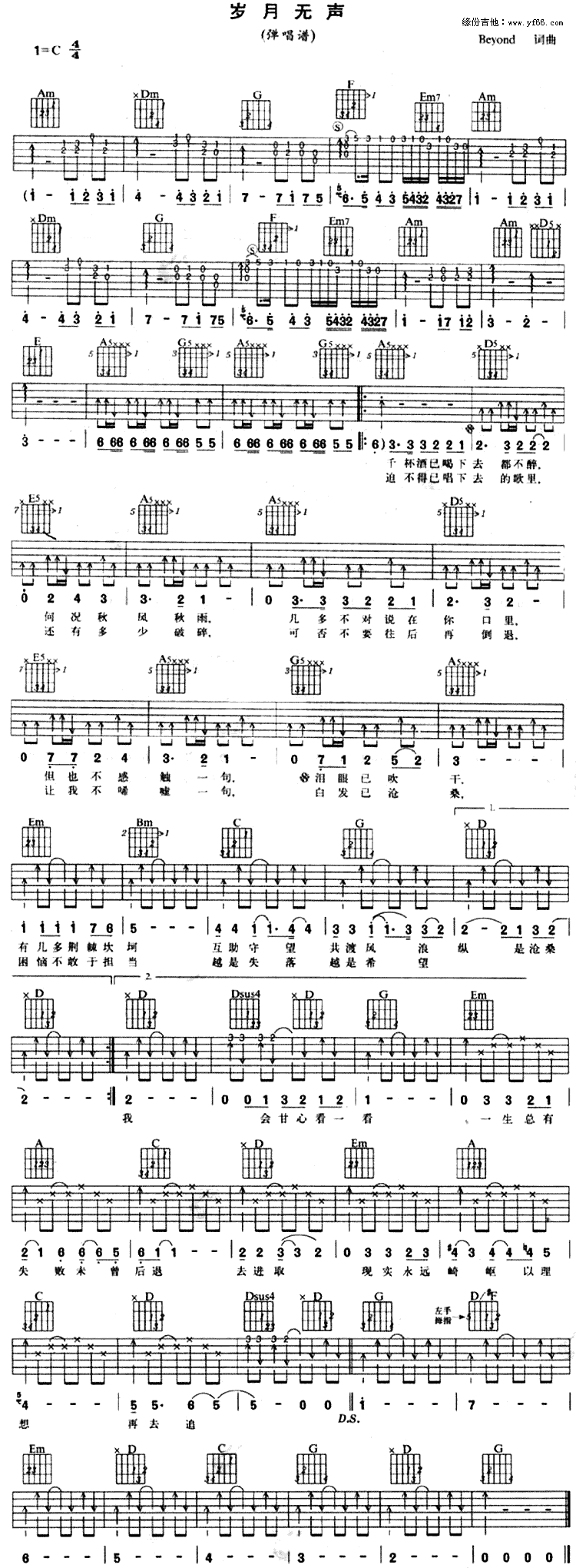 岁月无声吉他谱 - Beyond - C调吉他弹唱谱