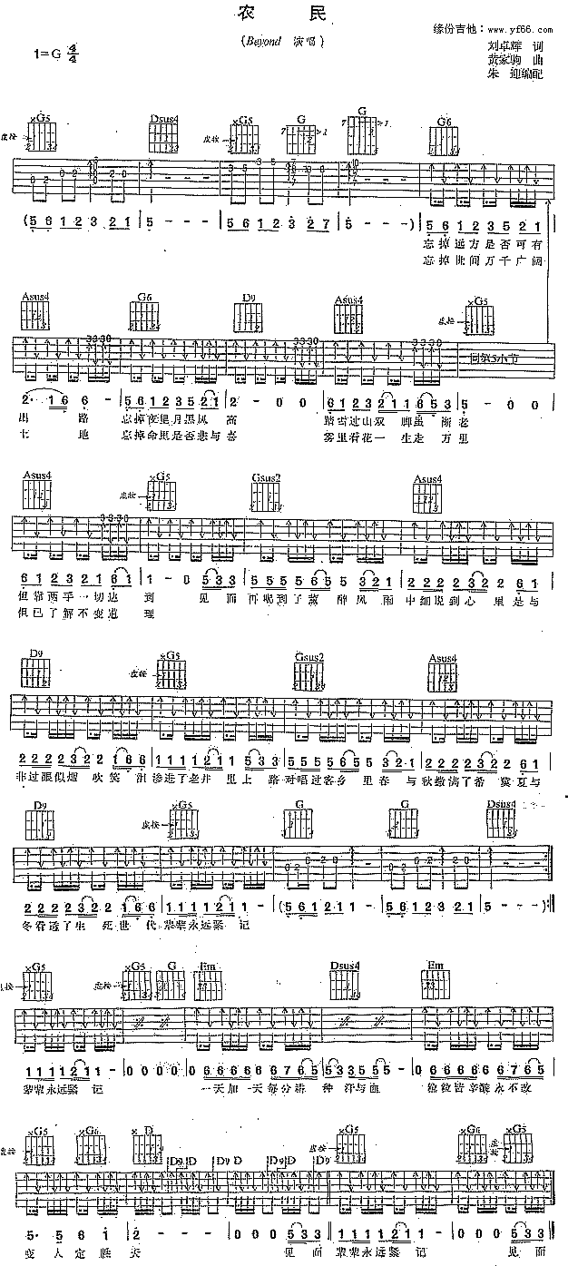 农民吉他谱 - Beyond - G调吉他弹唱谱