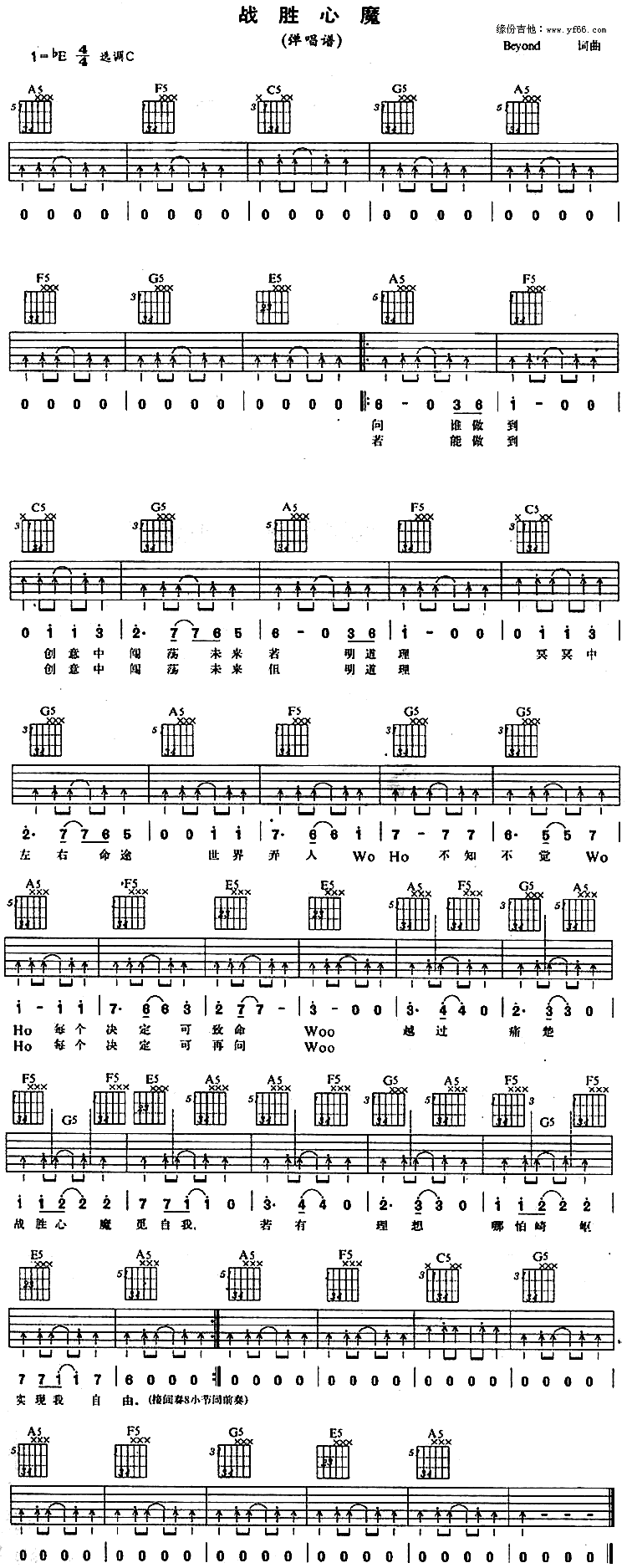 战胜心魔吉他谱 - Beyond - C调吉他弹唱谱