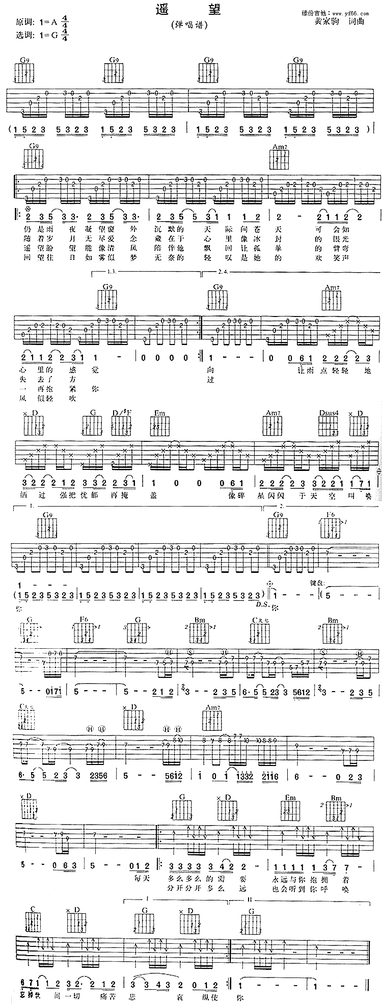 当前位置:琴谱网>吉他弹唱>遥望