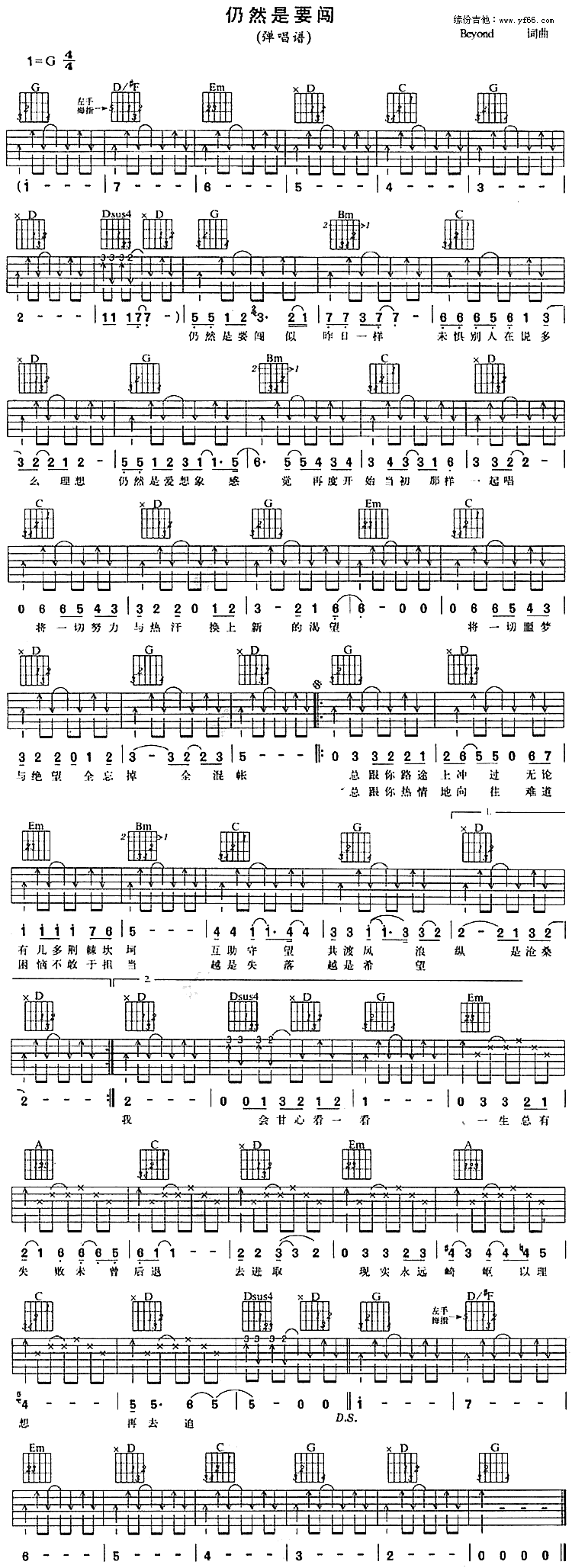 仍然是要闯吉他谱 - Beyond - G调吉他弹唱谱